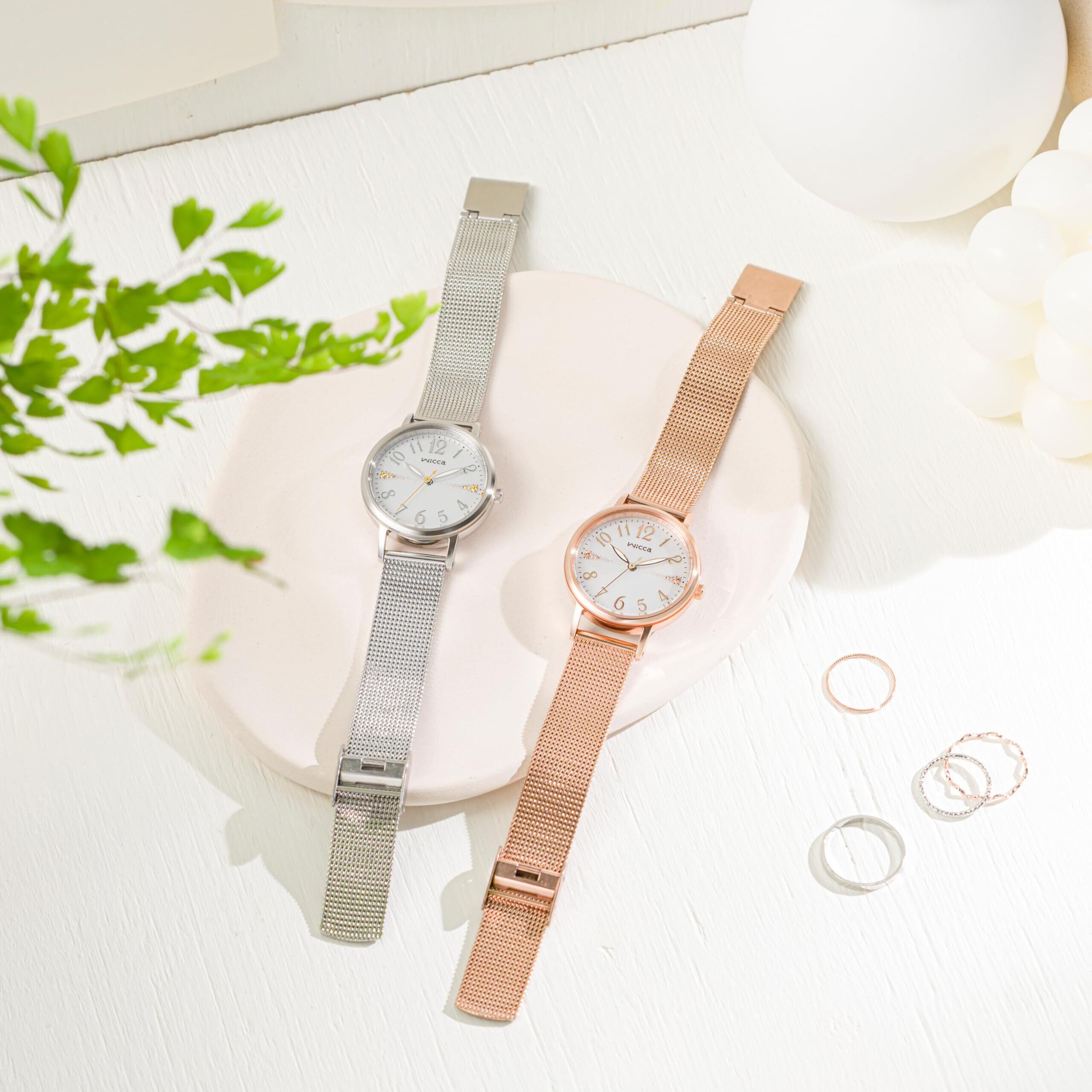 ・人気のケース径30mm、大きめフェイスにメッシュバンドを組み合わせた透明感のあるシンプルなデザイン。
