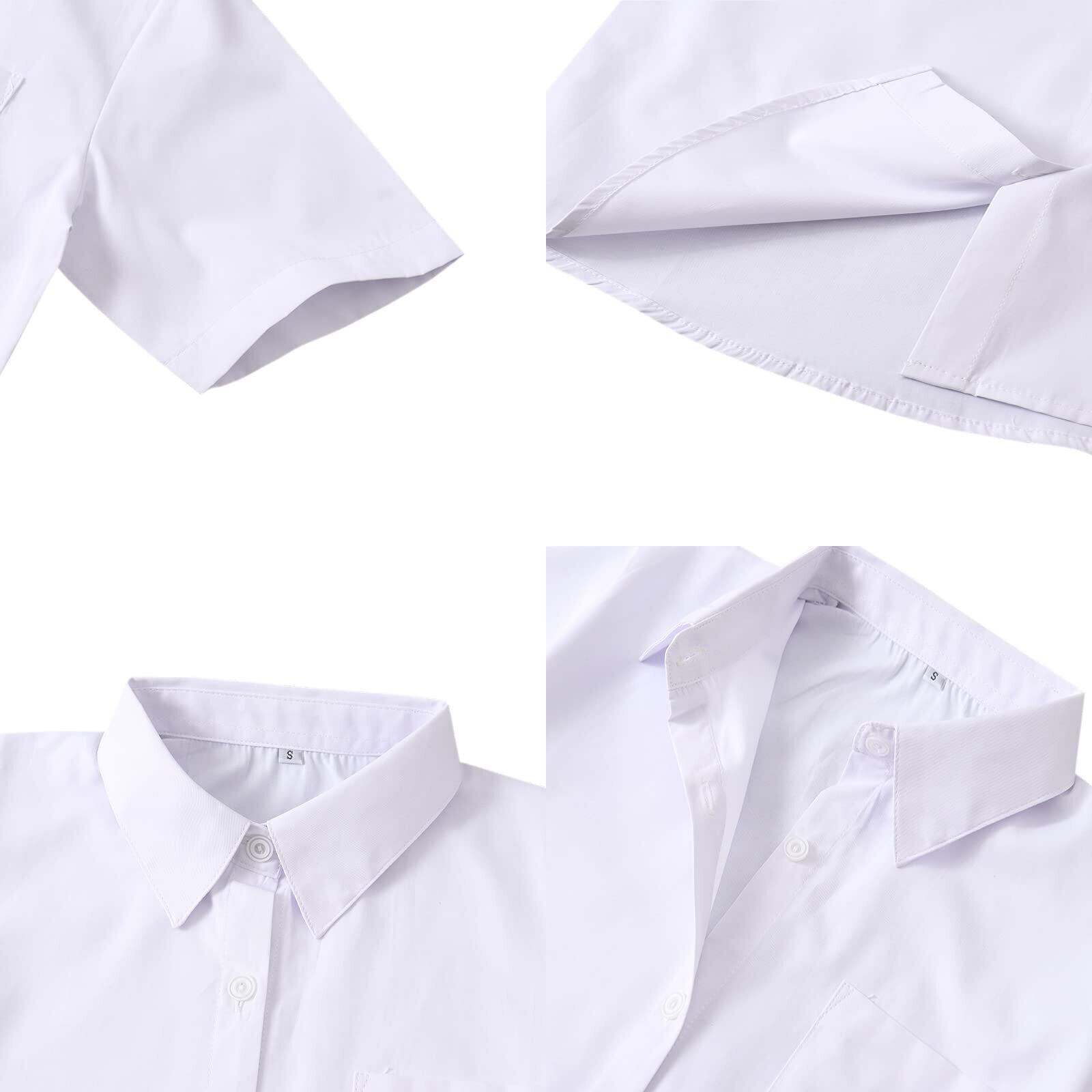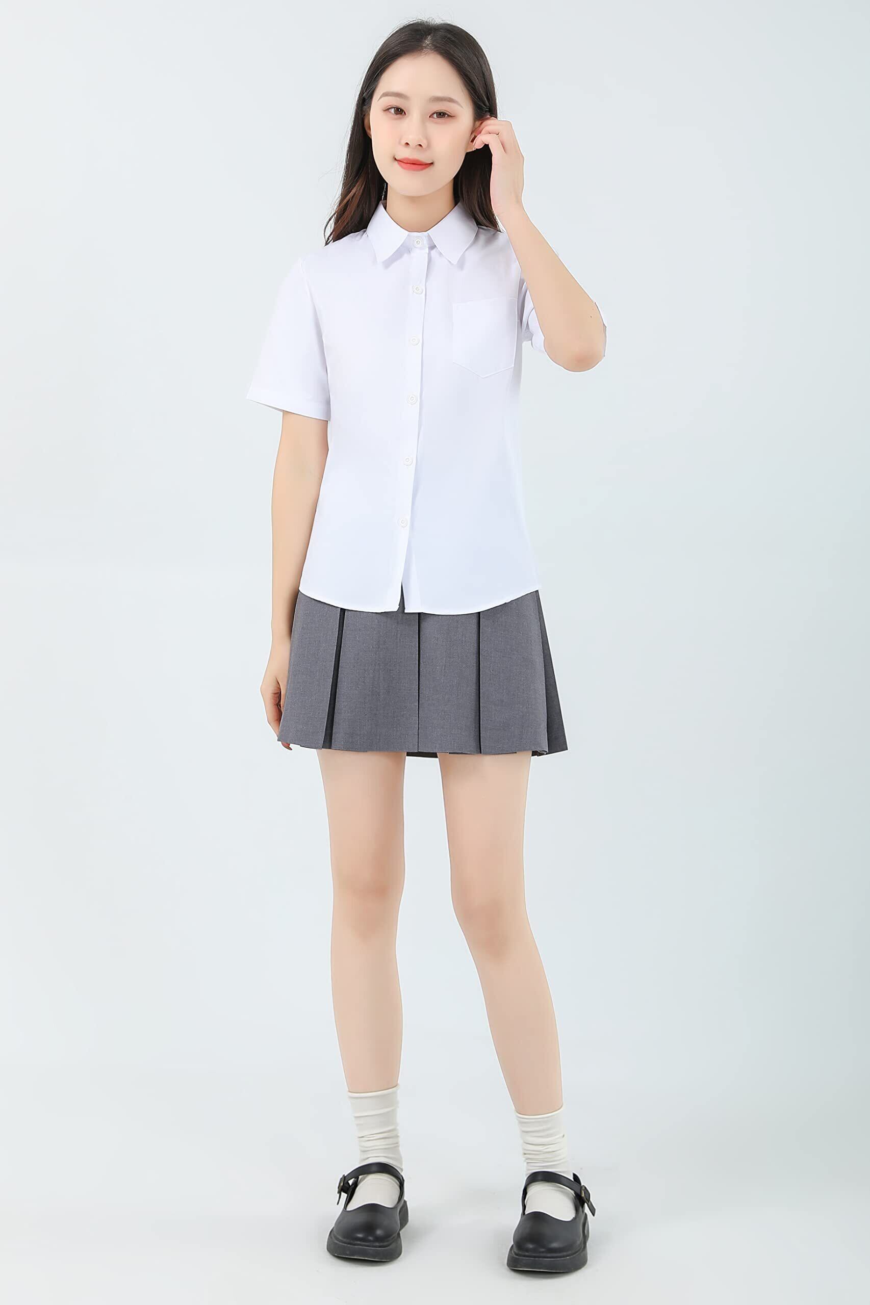 [Sharphon] 女子 スクールシャツ 長袖/半袖 角襟 レディース 無地 綿 シャツ トップス ポケット付