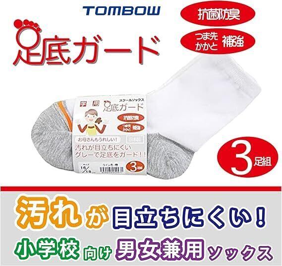 [トンボ学生服] 3足組 足底がグレーで汚れが目立ちにくいスクールソックス 19860-04