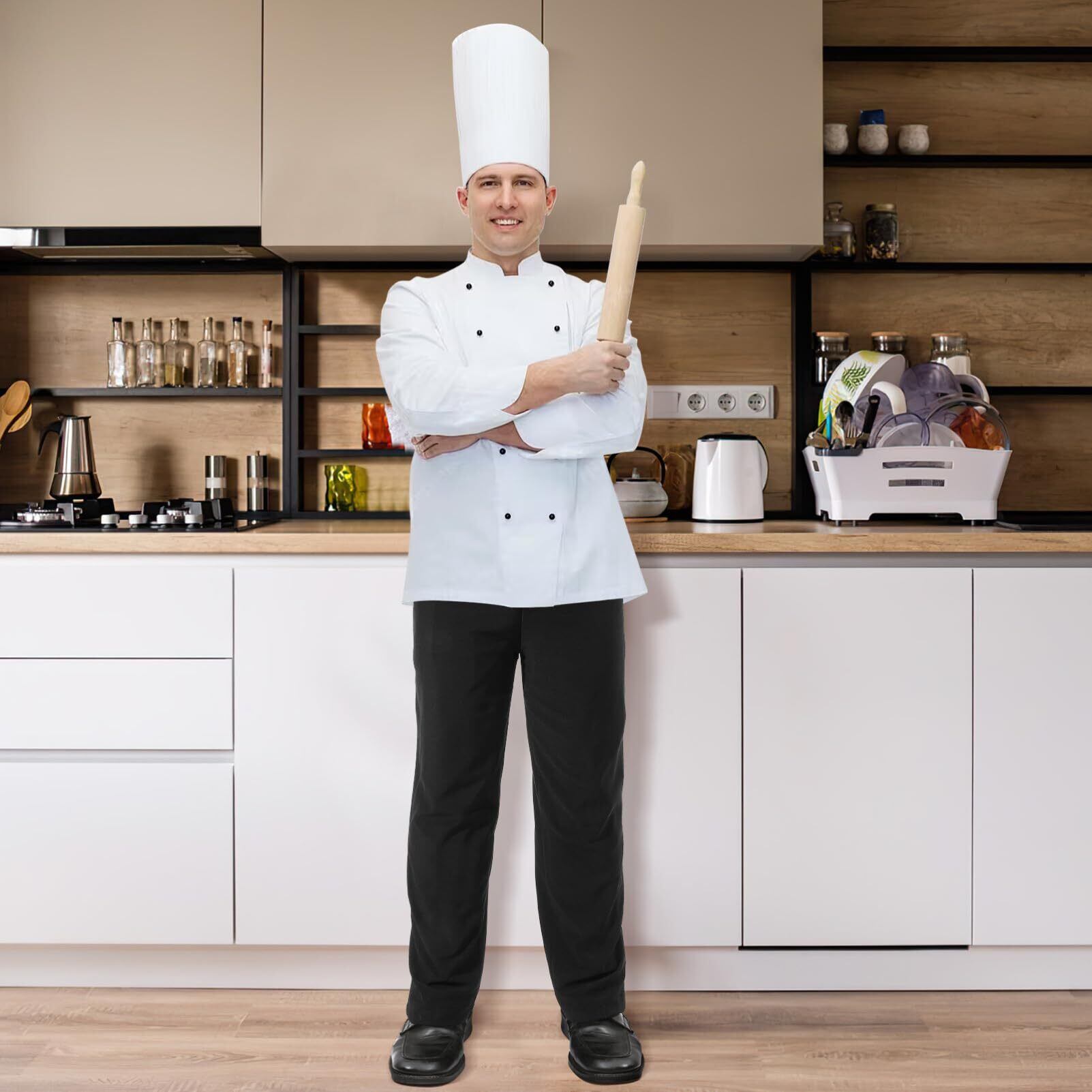 [LIFKOME] ズボン 黒 ゴム付き シェフパンツ コック服 飲食店ズボン おしゃれ 料理服 ロング 脇ゴム 無地 裾上げ不要 店員ユニフォーム 無地 男女兼用