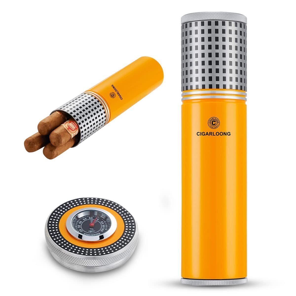 シガーチューブヒュミドール 湿度計付き ステンレススチール ポータブル 旅行用 シガー 保湿保護ケース (黄色)
