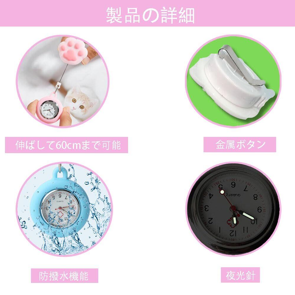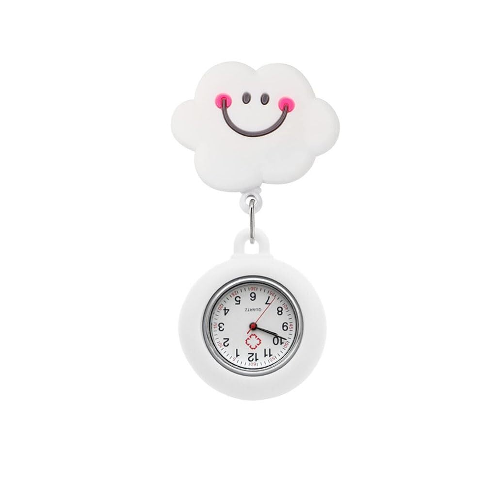 DFsucces ナースウォッチ かわいい クリップ式 ポケットウォッチ 伸び縮み可能 懐中時計 シンプルで防水 看護師用 男女兼用 誕生日 看護グッズ 看護の日 (雲)