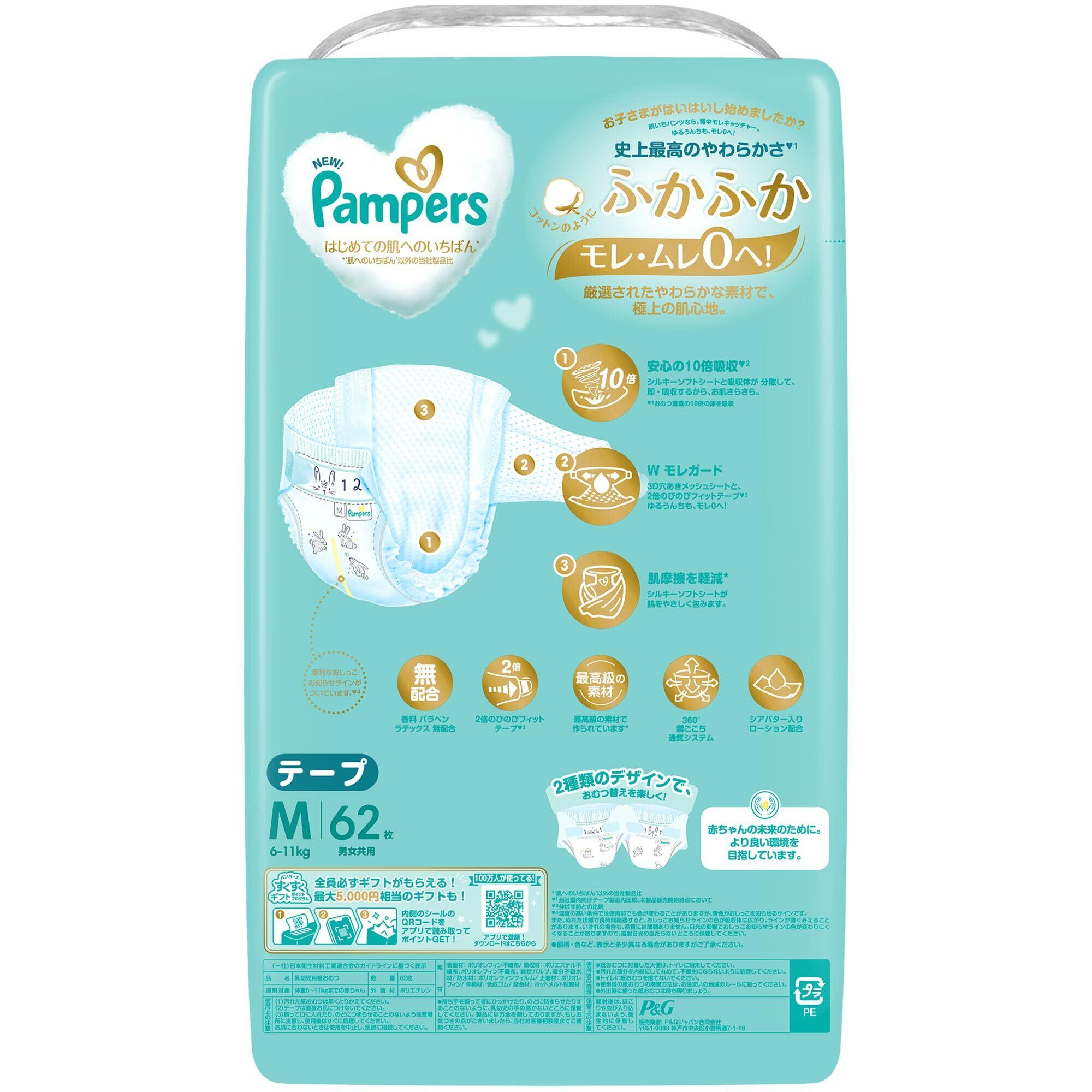 パンパース 【テープ Mサイズ】 オムツ はじめての肌へのいちばん (6~11kg) 186枚(62枚×3パック) [ケース品]