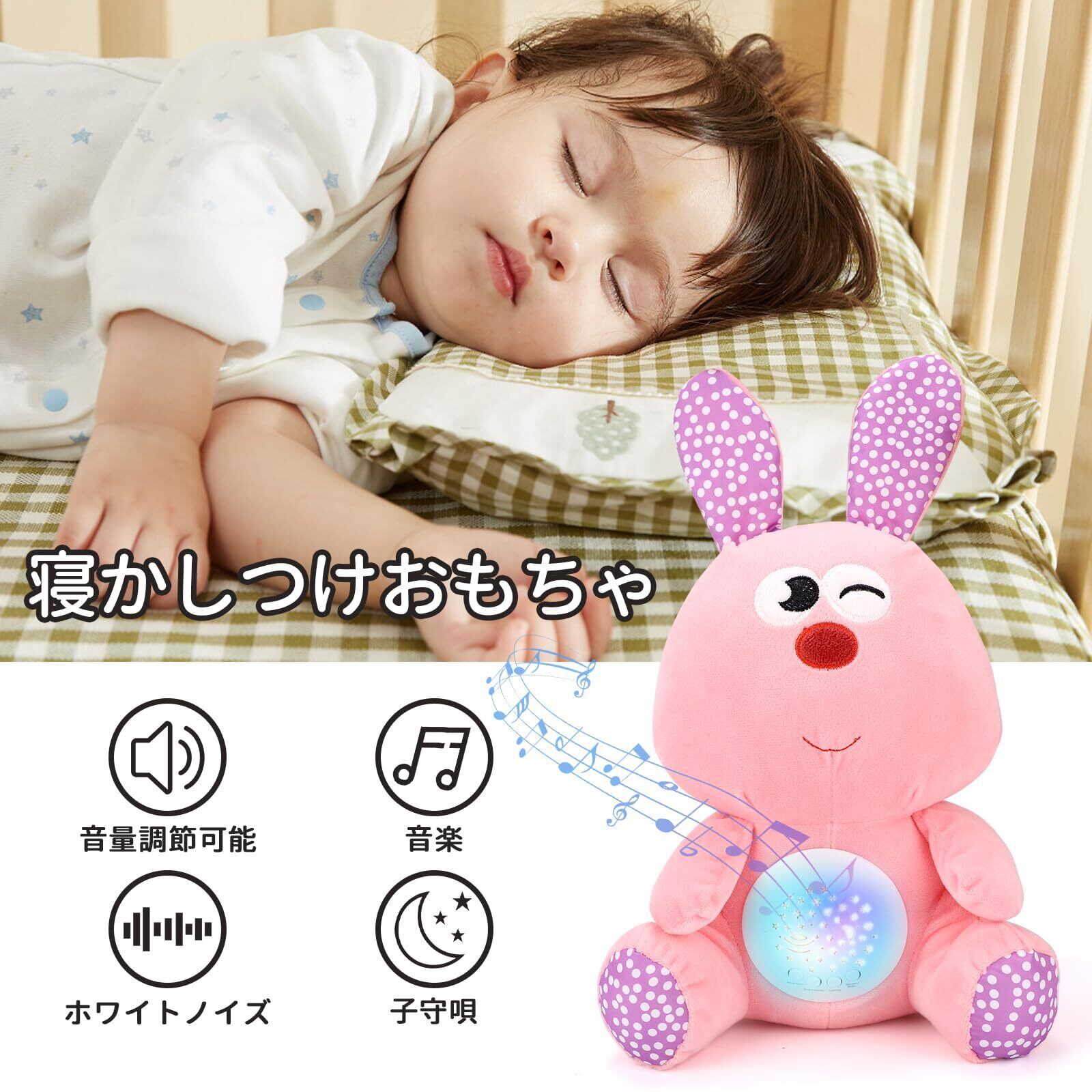 REMOKING 寝かしつけおもちゃ 赤ちゃん おもちゃ ホワイトノイズ オルゴール 家庭用 音楽 投影 うさぎ ぬいぐるみ 知育玩具 新生児 おもちゃ 1歳 出産祝い おもちゃ 女の子 男の子 子供玩具 誕生日プレゼント 贈り物