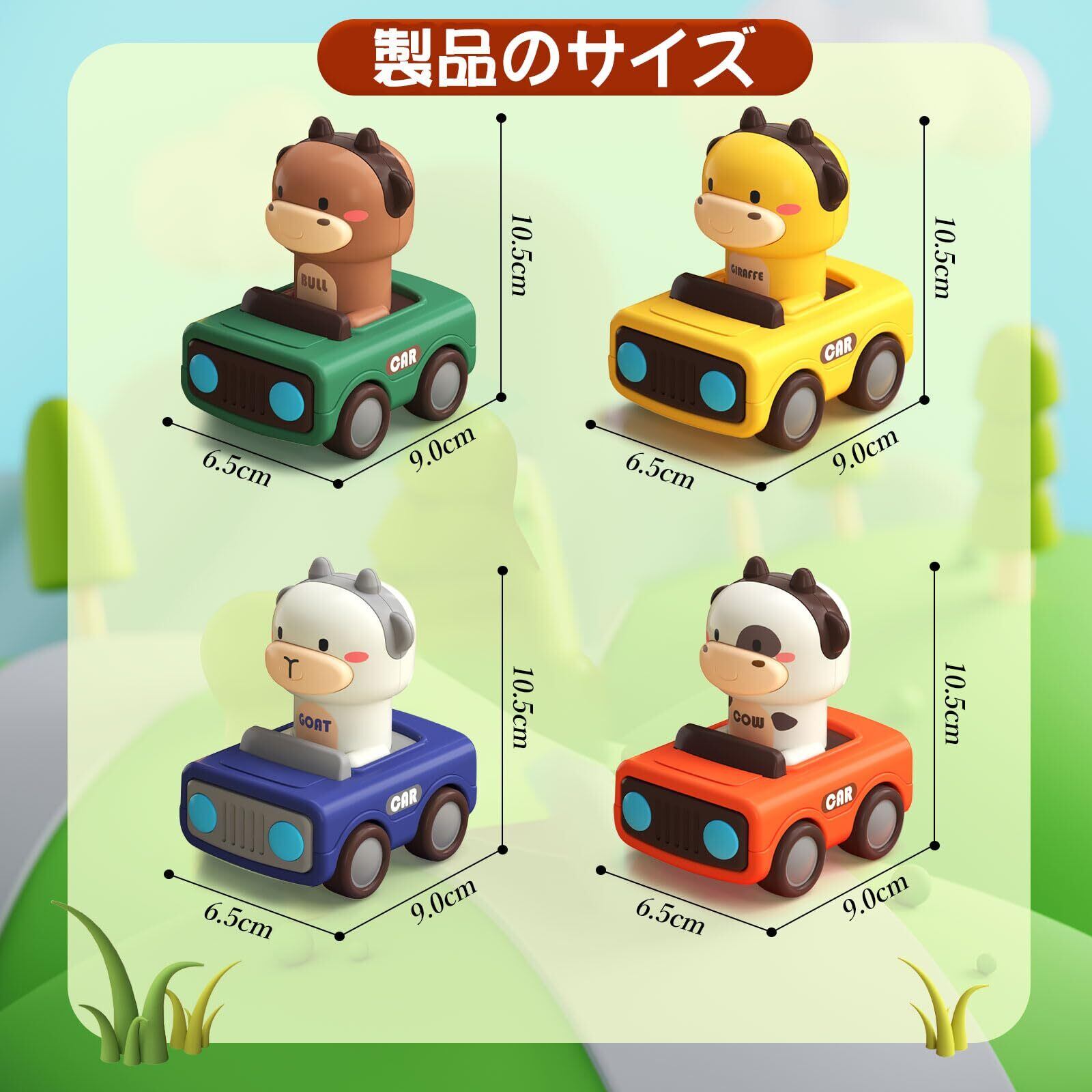 MIRAIMAX 4 in 1プレス&ゴー おもちゃカーセット 赤ちゃん用の車のおもちゃ 4種類の動物レーシングカー プレス&ゴー 仕掛け付きで電池不要 6ヶ月以上の幼児向け 知育玩具 1~3歳 誕生日プレゼント