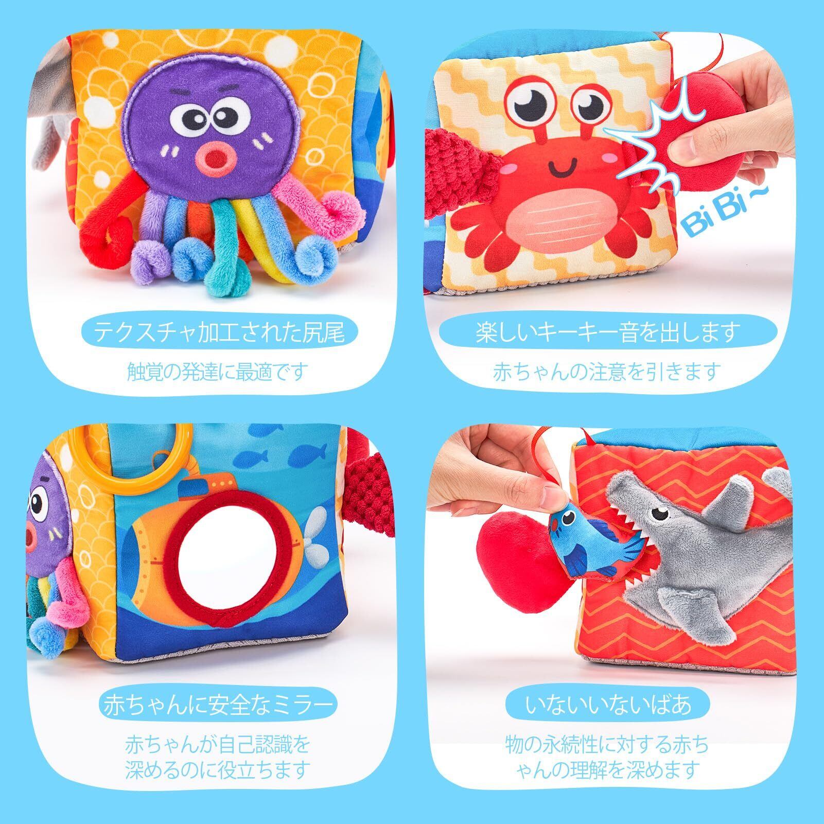 【安全テスト合格!ASTM CE認証取得済みで、安全で安心!】私たちは、赤ちゃんにとって安全が重要であることを理解しています。そのため、当社のおもちゃはすべての規制基準に従って安全性試験を受けています。赤ちゃんに優しい素材で作られており、窒息の危険となる小さな部品は含まれていません。お子様がきっと気に入る、安全で魅力的なおもちゃです。