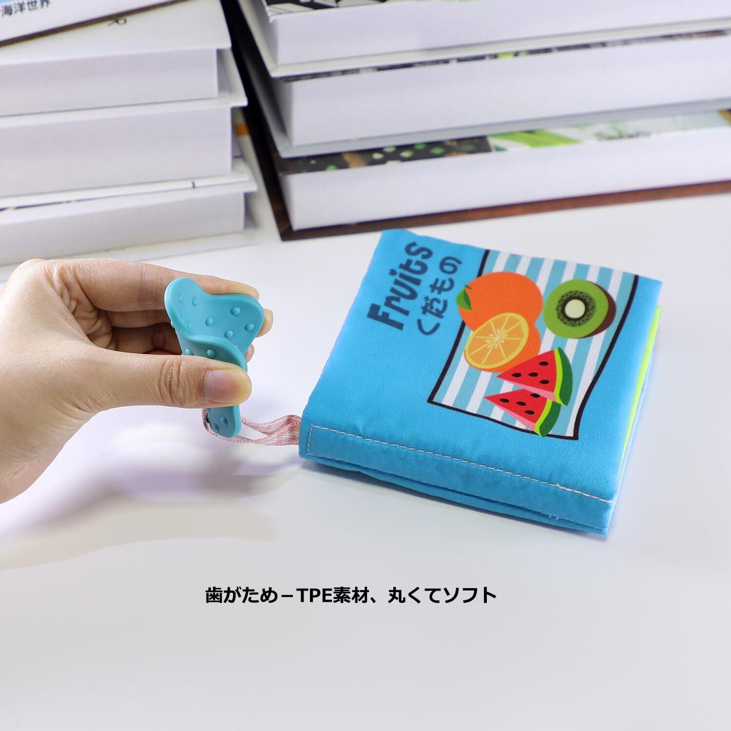 安全&エコ素材:布絵本-ポリエステル、歯がため-TPE、丸くてソフトで、カサカサ紙-PET、音の鳴り- ABS。染料について、色落ち堅牢度が高く、さらに染料自体、人体に無害な染料を使用しております。商品は水洗いできて、衛生的です。洗浄後は、風通しの良いところで陰干しする。
