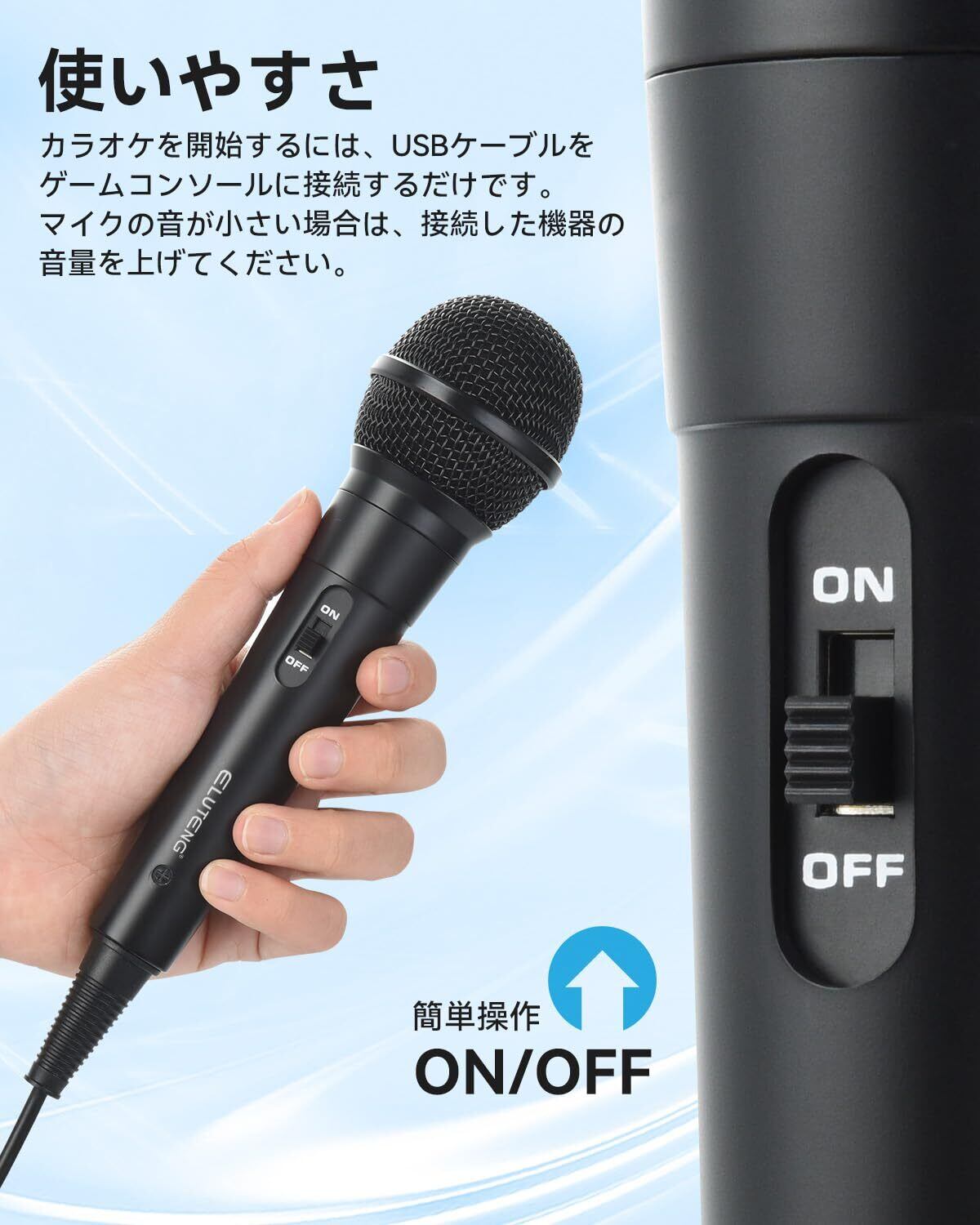 ELUTENG For Switch Nintendo カラオケマイク 3Mケーブル付き USB接続 ゲーム用マイク カラオケ joysound ブラック PC/PS5/PS4/PS3/Xbox One/Xbox 360/Wiiに対応