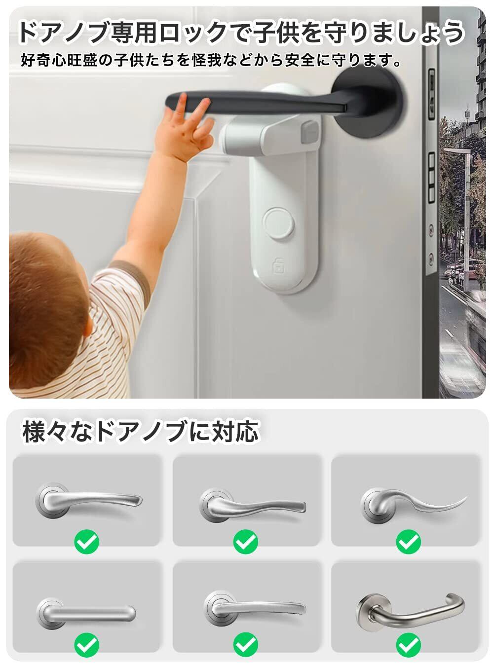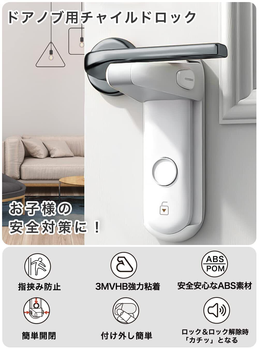 Deligoo ドアノブ ロック ドアロック 赤ちゃん チャイルドロック 指はさみ防止 後付け ベビーガード ドア開け防止 猫 脱走防止(ホワイト)