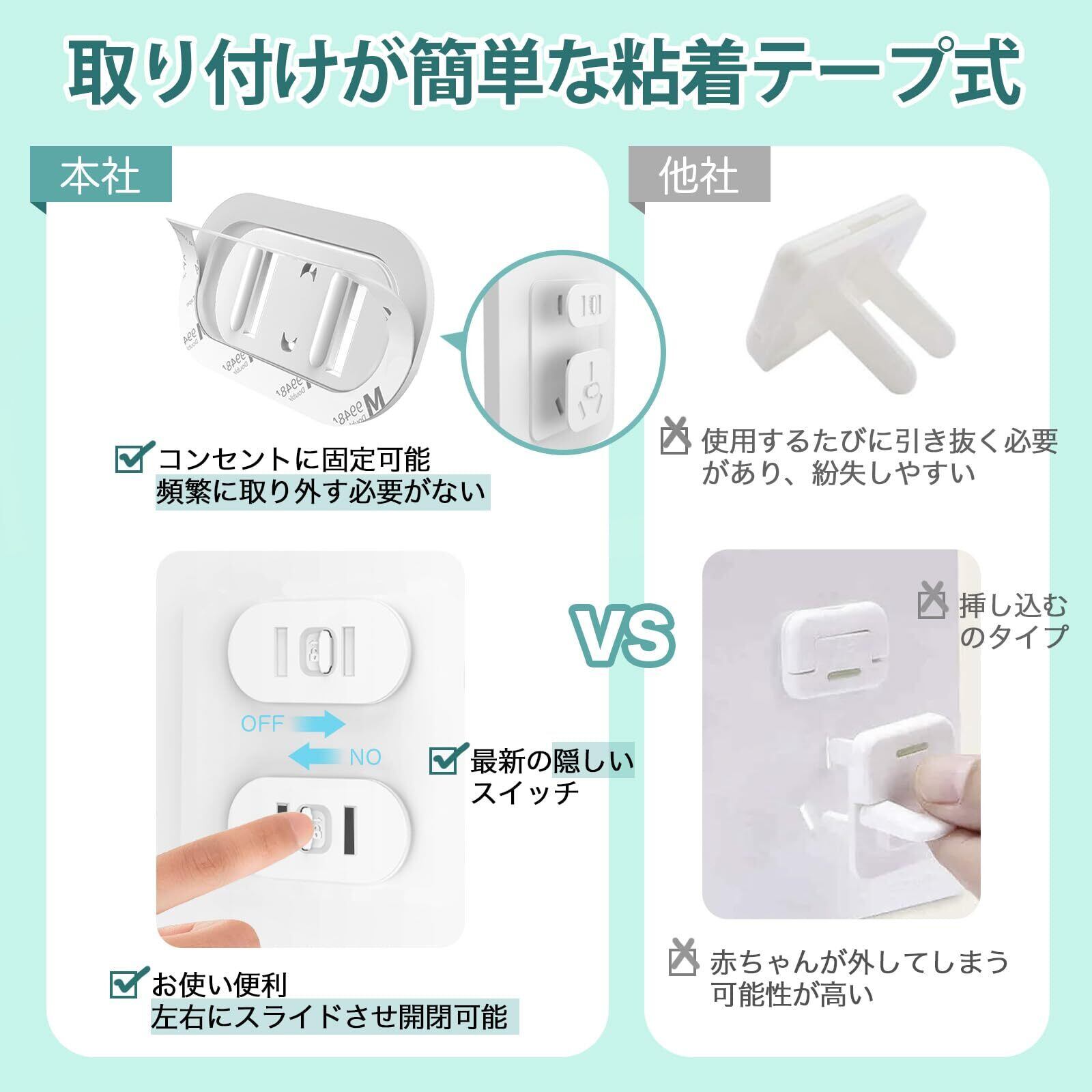 【お使い便利】部品をスライドするだけで開閉できるので、作業が簡単です。使用したい時頻繁にコンセントガードを外す必要がなりません。挿し込むのタイプより、赤ちゃんやペットが外してしまう可能性も低くなります。