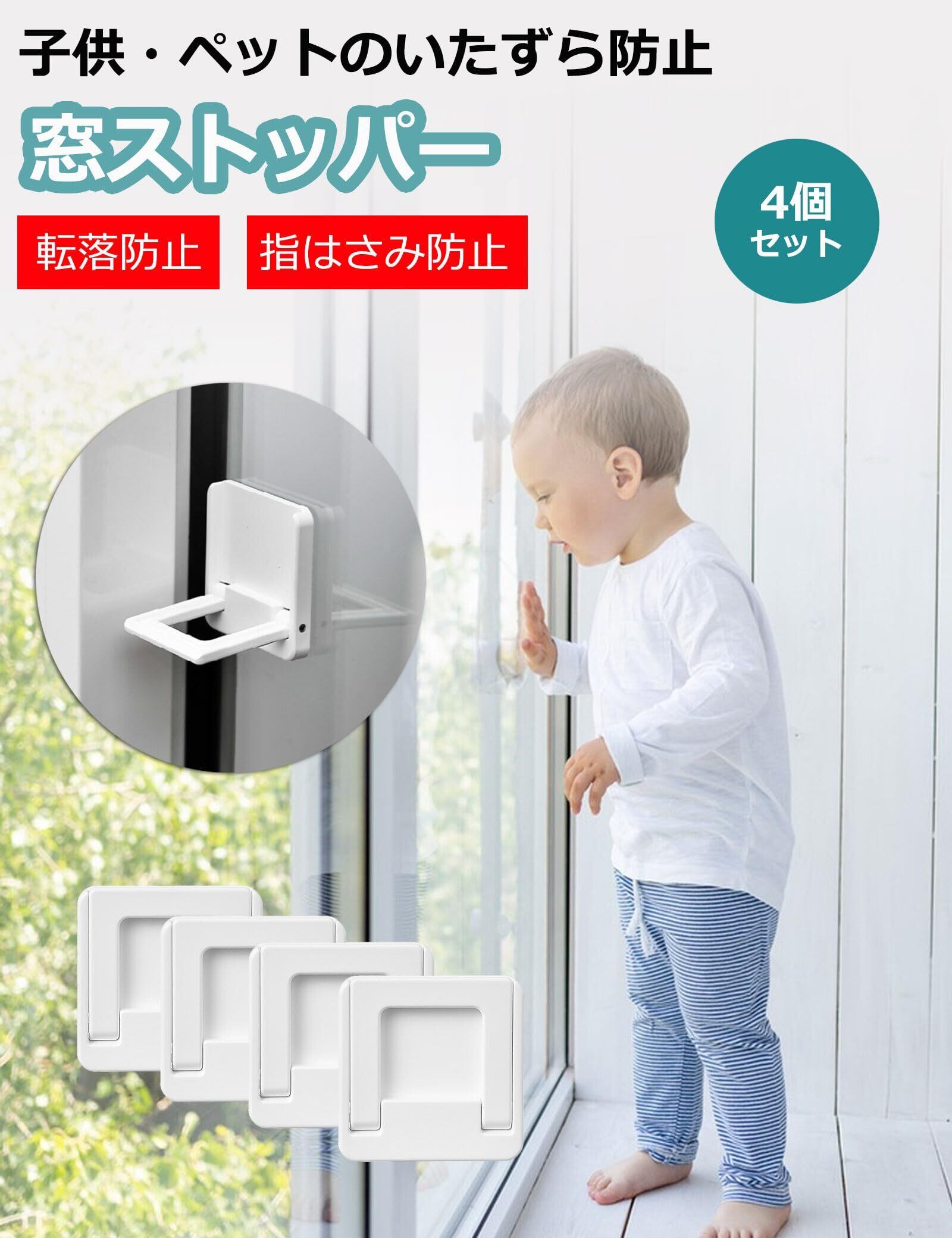 ZEWZE 窓ロック 引き戸ストッパー 4個セット 窓ストッパー ベビーガード 安全ロック 転落防止 防犯対策 子供 赤ちゃん ペット 犬 猫 落下防止 防犯 転落防止 多機能 引き出し取っ手 便座取っ手 (ホワイト/4個)