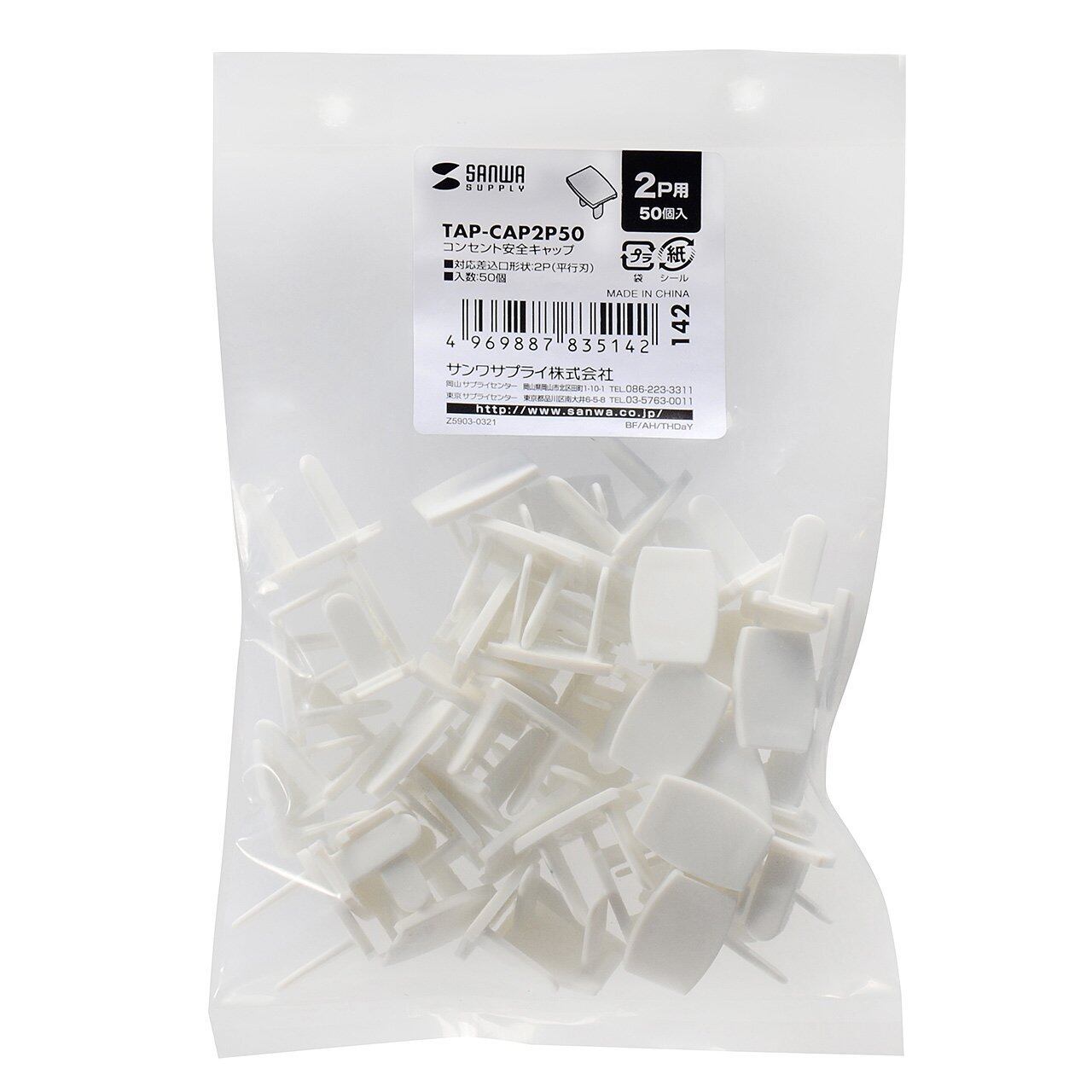 サンワサプライ コンセント安全キャップ 2P対応 50個入 ホコリ等の侵入防止 TAP-CAP2P50