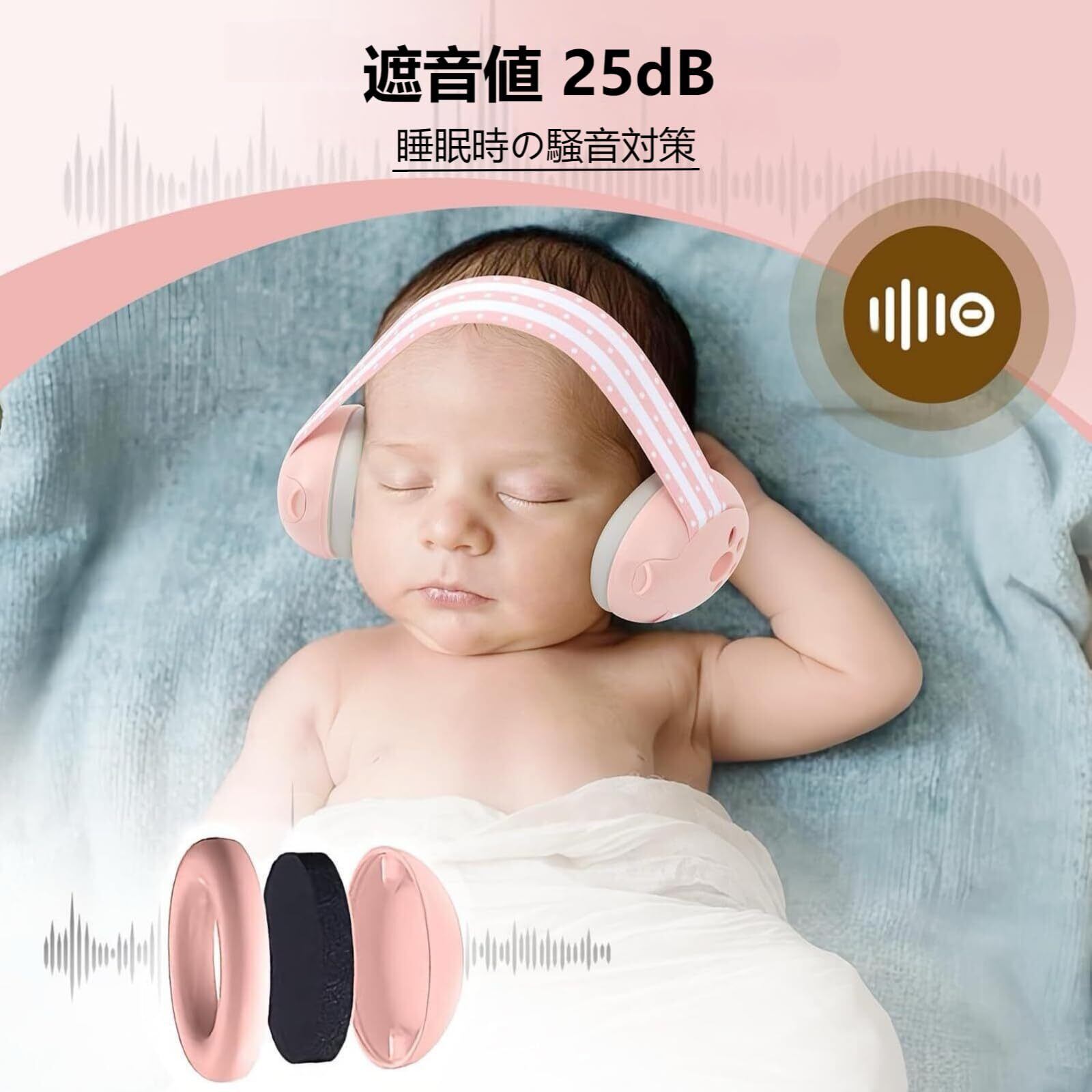 [MAACKIA] 防音 イヤーマフ 子供 1-48ヶ月 ゴムバンド ヘッドバンド付き 2WAY 耳当て 遮音値25dB 赤ちゃん キッズ ベイビー 幼児 ライブ 飛行機 騒音軽減 聴覚保護