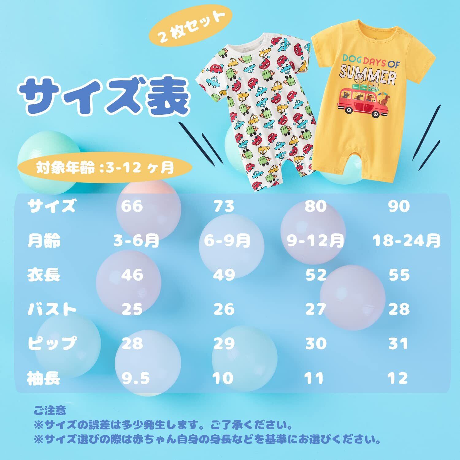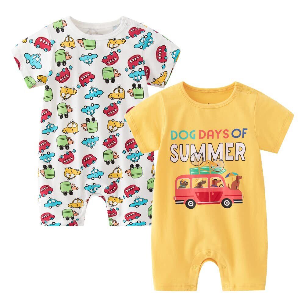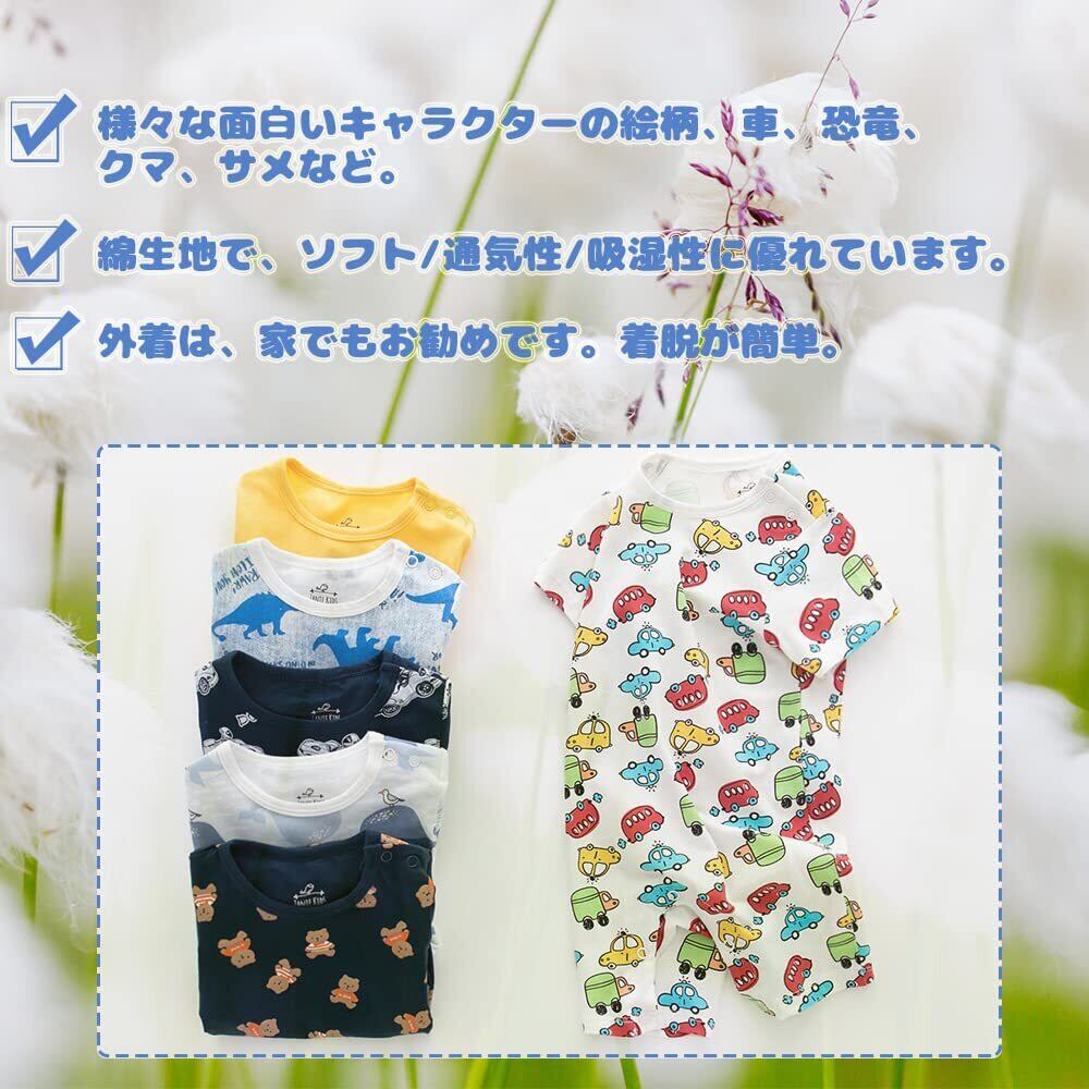 [Baby Nest] ベビー服 半袖 ロンパース 男の子 夏 肩ボタン フルプリント コットン セット 66 73 80 90