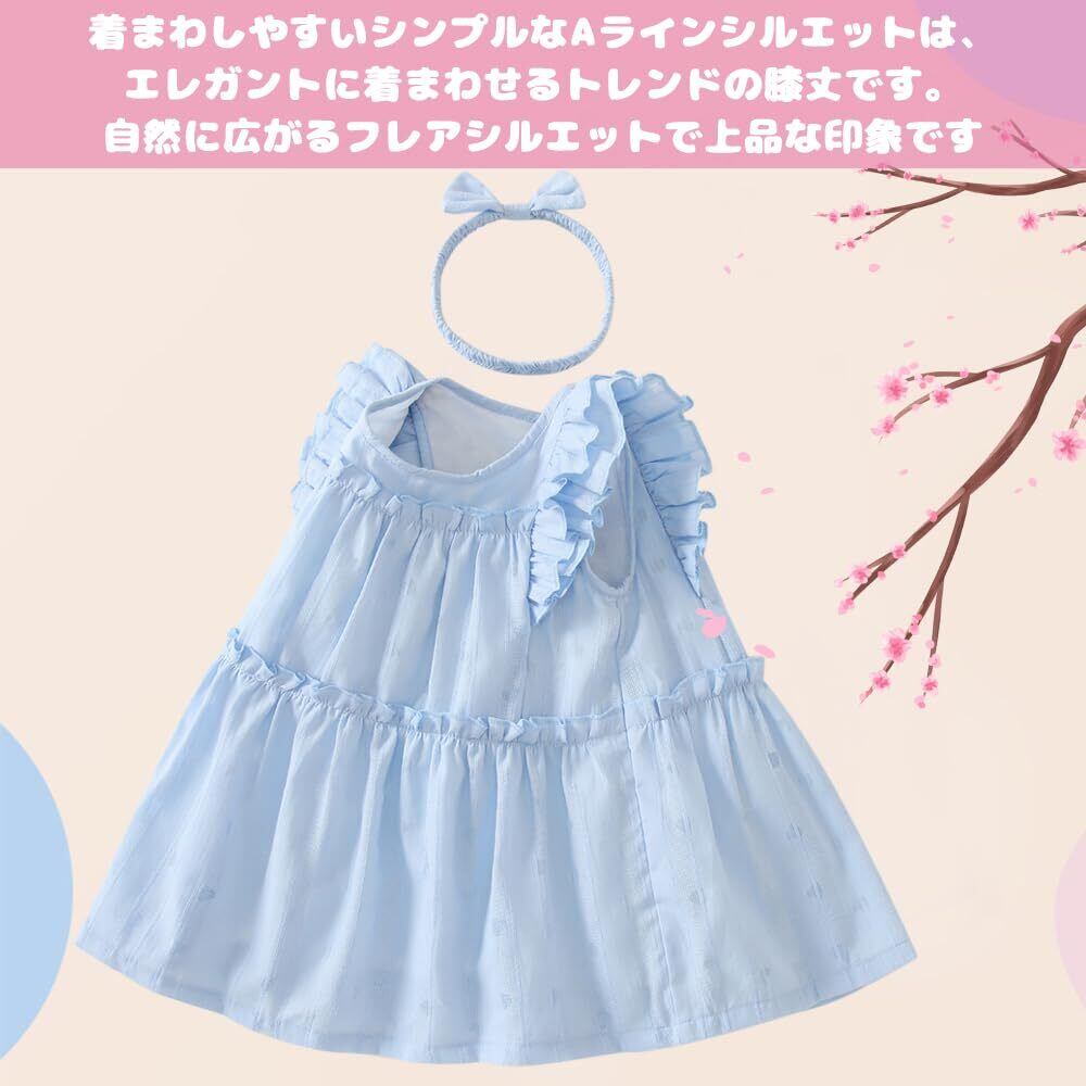 [Baby Nest] ベビー服 女の子 ワンピース 半袖 ロンパース 夏服 赤ちゃん服 新生児服 退院服 チュニック無地 かわいい セレモニー服 ヘアバンド付き