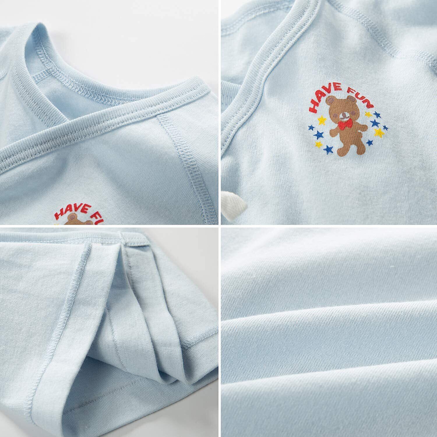 Litchii Guusii 新生児肌着 6枚組 赤ちゃん コンビ肌着 短肌着 綿100% ベビー服 長袖ロンパース カバーオール ロンパース 前開きタイプ 肌着パジャマ 可愛いプリント 通年素材 ブルー
