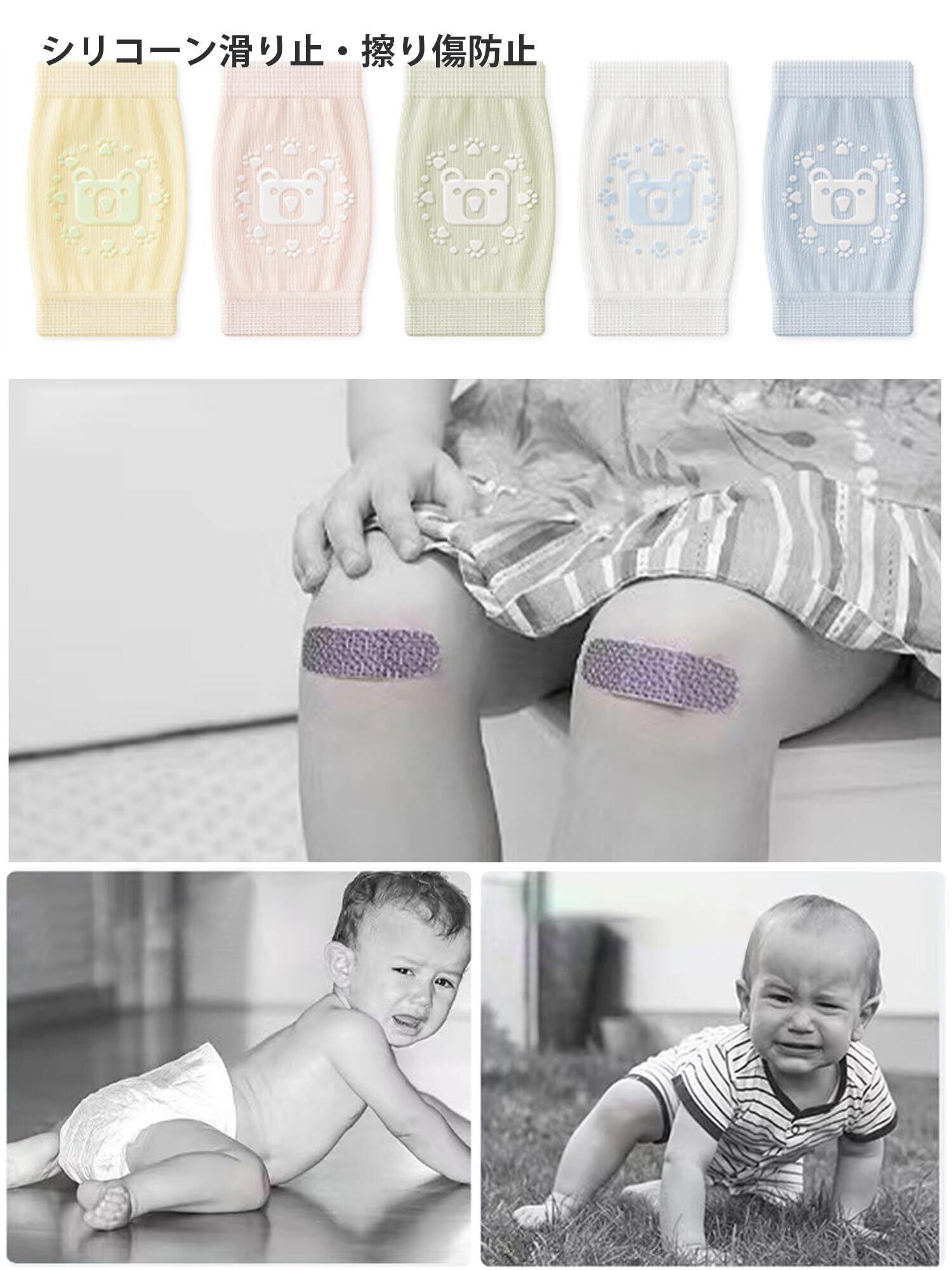 シリコーン滑り止設計:これは透かし編みのベビー夏用滑り止膝パッドです、赤ちゃんが活発になる夏場には、膝擦れの防止。赤ちゃんが滑ったり転んだりすることを恐れずにハイハイできるようにし、遊び中に安心を提供します。