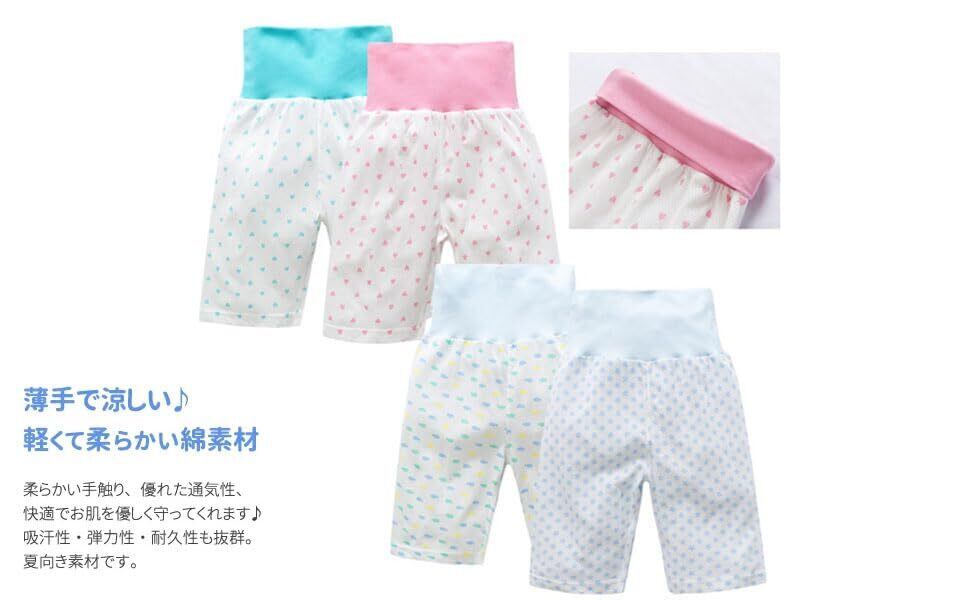 [ZFZTLYEL] ベビーパジャマ ズボン下 パンツ パジャマ ルームウェア 男の子 ボーイズ ガールズ 女の子 ナイトウェア 綿100% 5分丈 腹巻き付き 寝巻き 夏 80-130cm