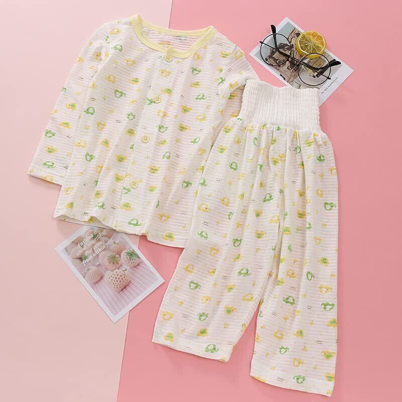 [Jaydyequ] ベビー服 パジャマ春夏秋服薄手綿腹巻上下セット前開き長袖男の子女の子部屋着子供服メッシュ総柄