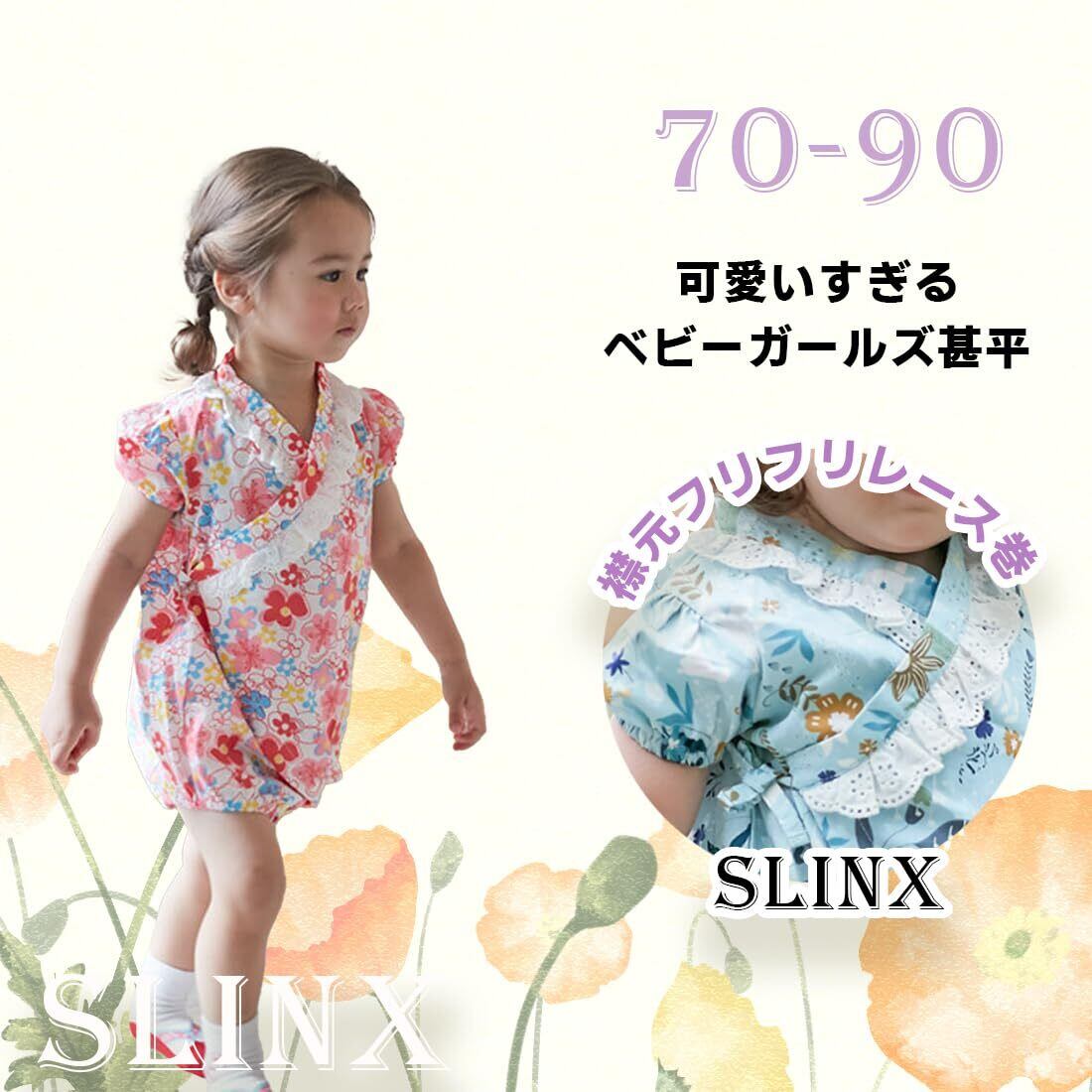 [SLINX] ベビー 女の子 浴衣 甚平 可愛い ロンパース 甚平ロンパース 夏 赤ちゃん 新生児 レース 花柄 ベビー服 ロンパース半袖 前開き コットン HF8007