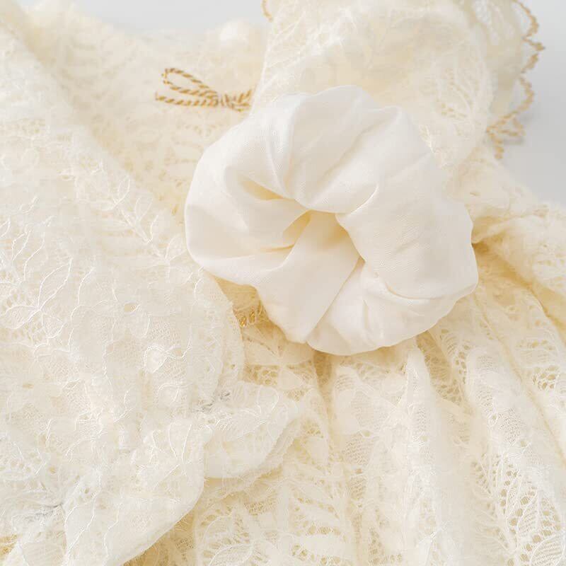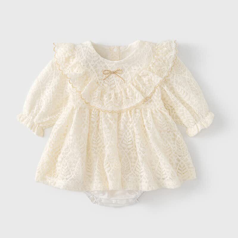 [Baby koi] ベビー服子供服女の子洋服春秋長袖ワンピーススカート付き髪飾りガールズカジュアル普段着ドレス結婚式お宮参り発表会七五三バースデー贈り物ギフト無地ベージュ