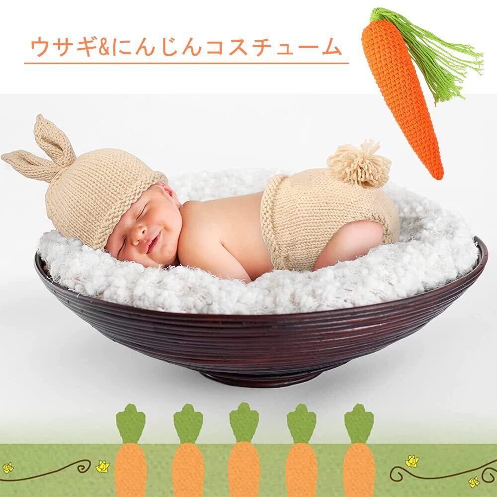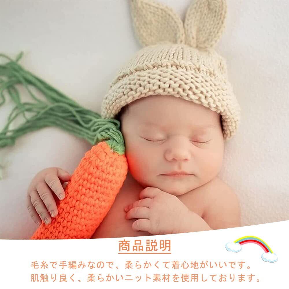 LIKENNY ウサギ ニット帽セット 寝相アート衣装 100日祝い ベビーコスチューム 写真を撮る道具 出産祝い バースデー 記念撮影 写真を撮る道具 可愛い 毛糸 手編み 男女共用 (3点セット)