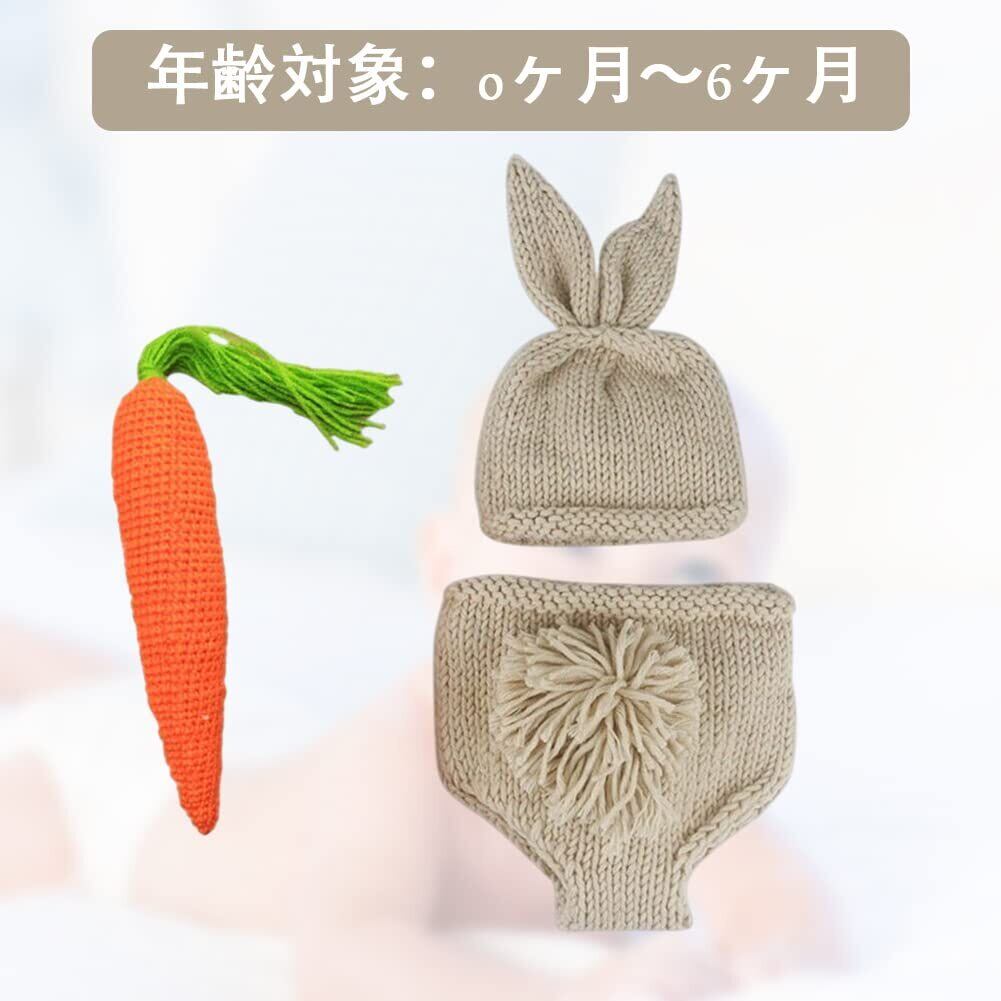 セット内容:ベージュ ニット ウサギ ニンジン ズボン&帽子 3点セット。素材:アクリル ウエスト:約36cm~約50cm 頭囲:約24cm~約34cm ワンサイズ:0ヵ月~6ヵ月に適しています。