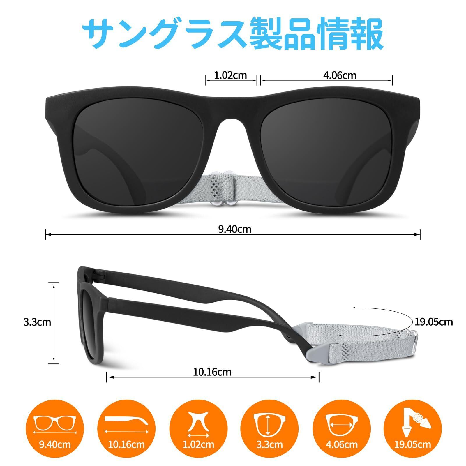 【ストラップ付属!適応年齢は約0~3歳】ストラップがあり、サングラス落下を防ぐことができます。0~3歳の赤ちゃんに適していますが、男の子も女の子も使えます。