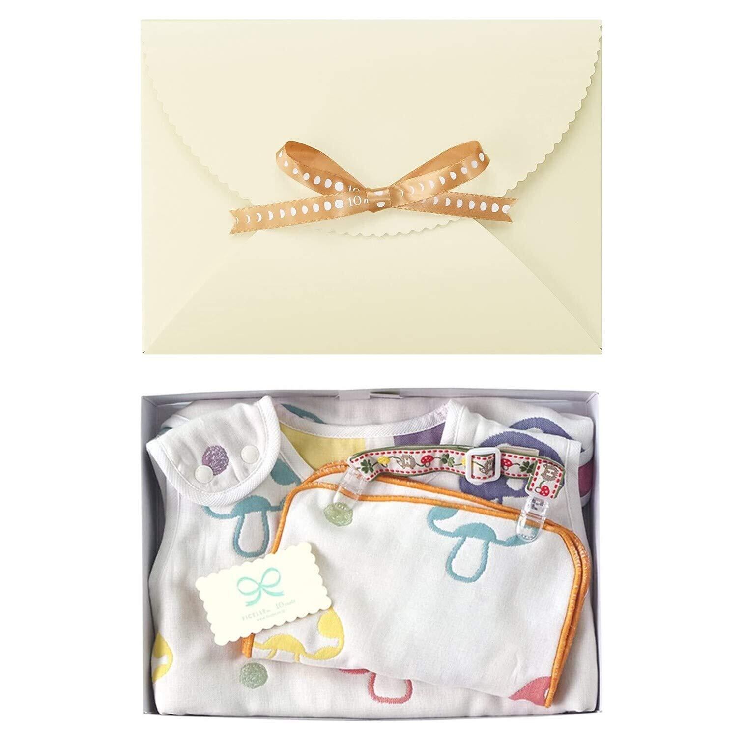 1年中お使いいただけるHoppettaで大人気の6重ガーゼスリーパーとハンカチ&クリップセットを組み合わせたベビーギフトです。