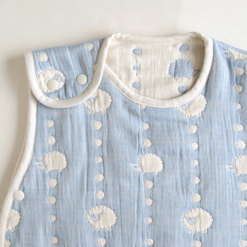 10mois(ディモワ) - Hoppetta 出産祝い ギフトラップ付き ふくふくガーゼ(6重ガーゼ) ベビースリーパー コットン100% 新生児~3歳頃まで ブルー 着丈58cm 18111039