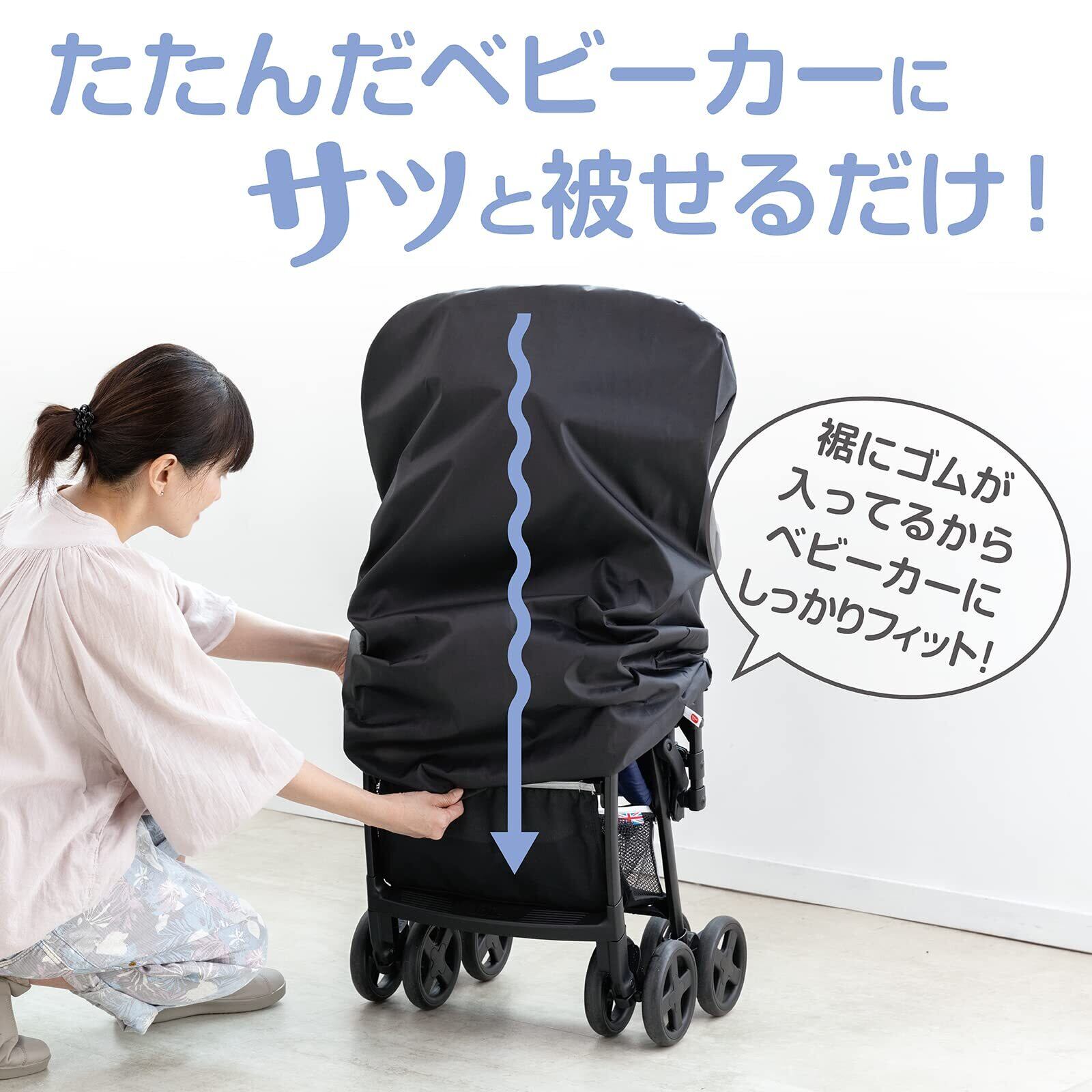 特徴3:裾にゴムが入っていてベビーカーにフィットする