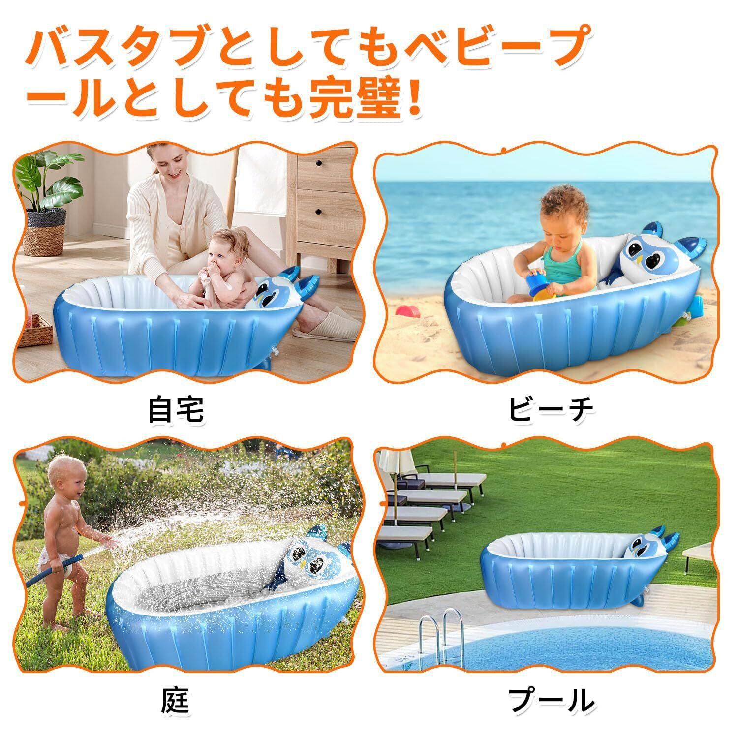 【多機能インフレータブルプール】ベビーバスタブとしてだけでなく、ボールプール、砂場、おもちゃプール、釣りゲームプール、ビーチ、キャンプなどにもお使いいただけます。赤ちゃんの旅行やキャンプ用品として最適です。