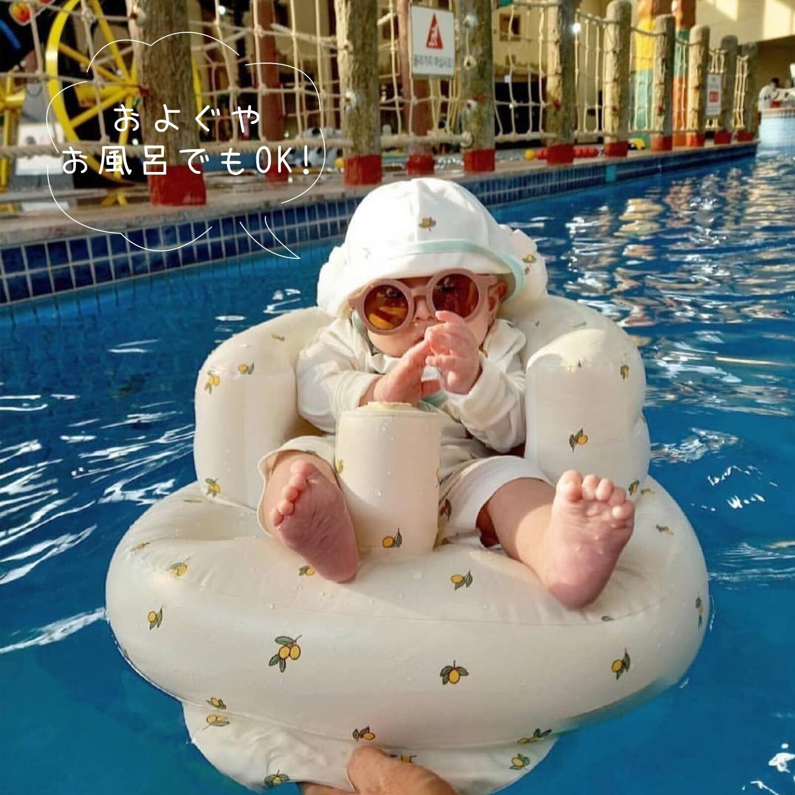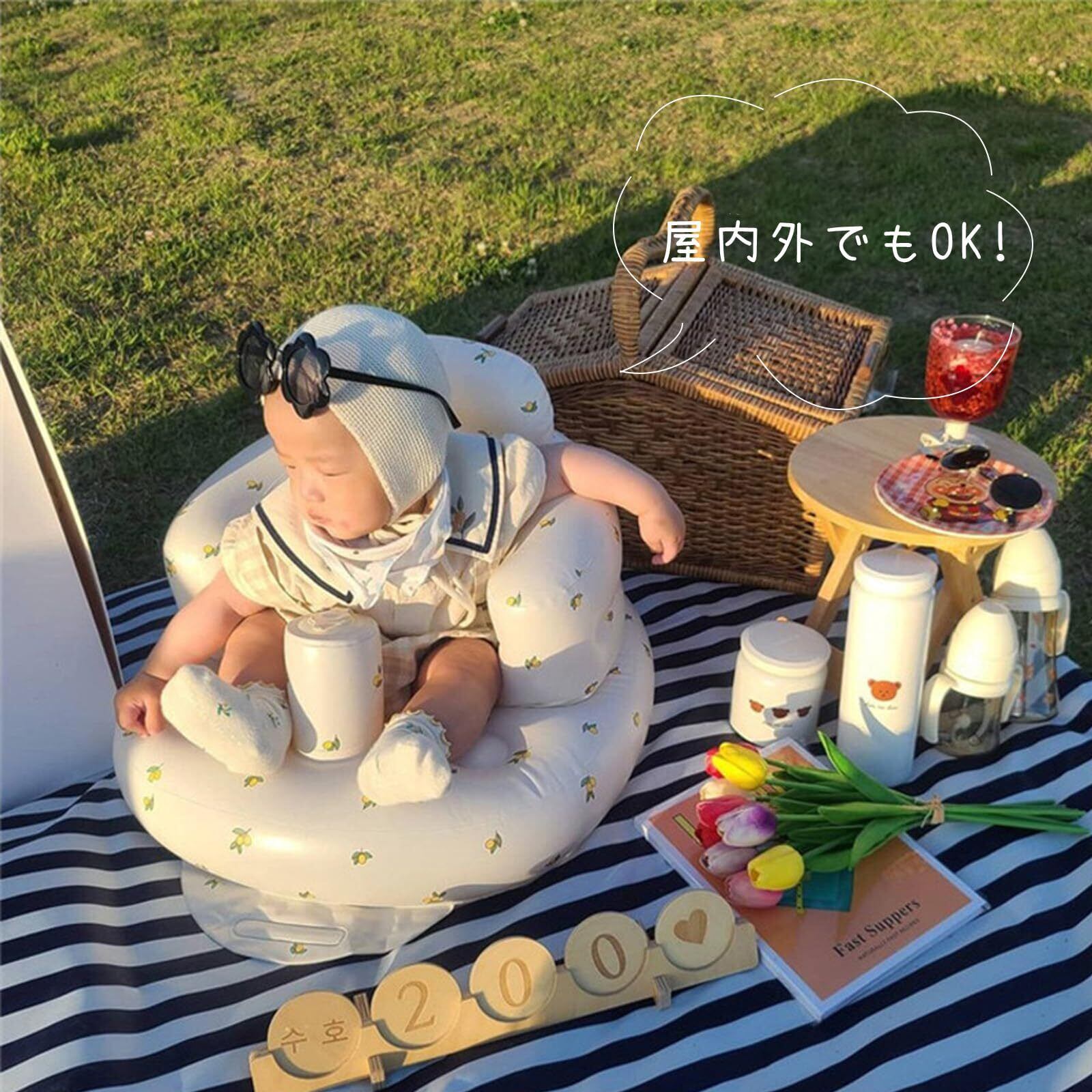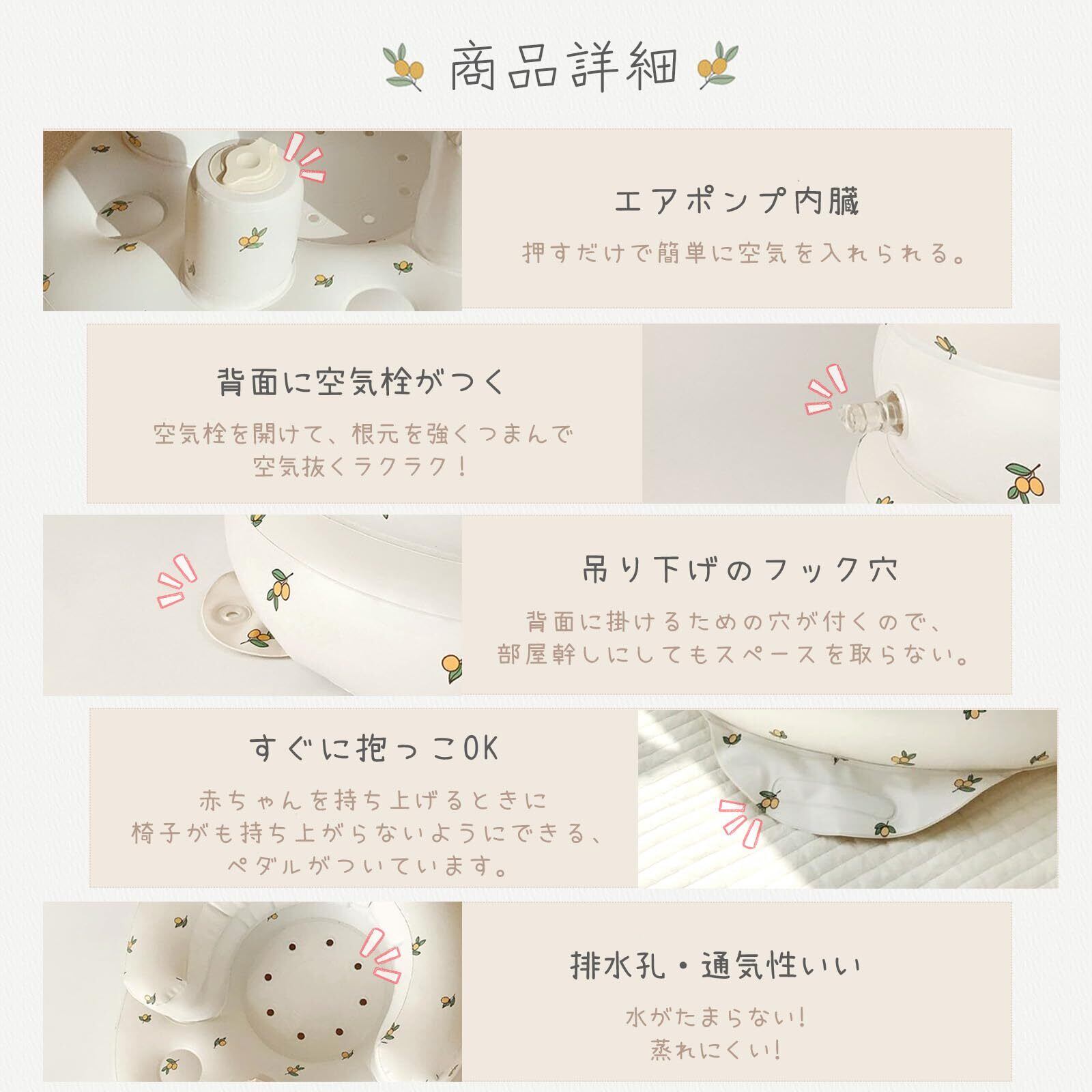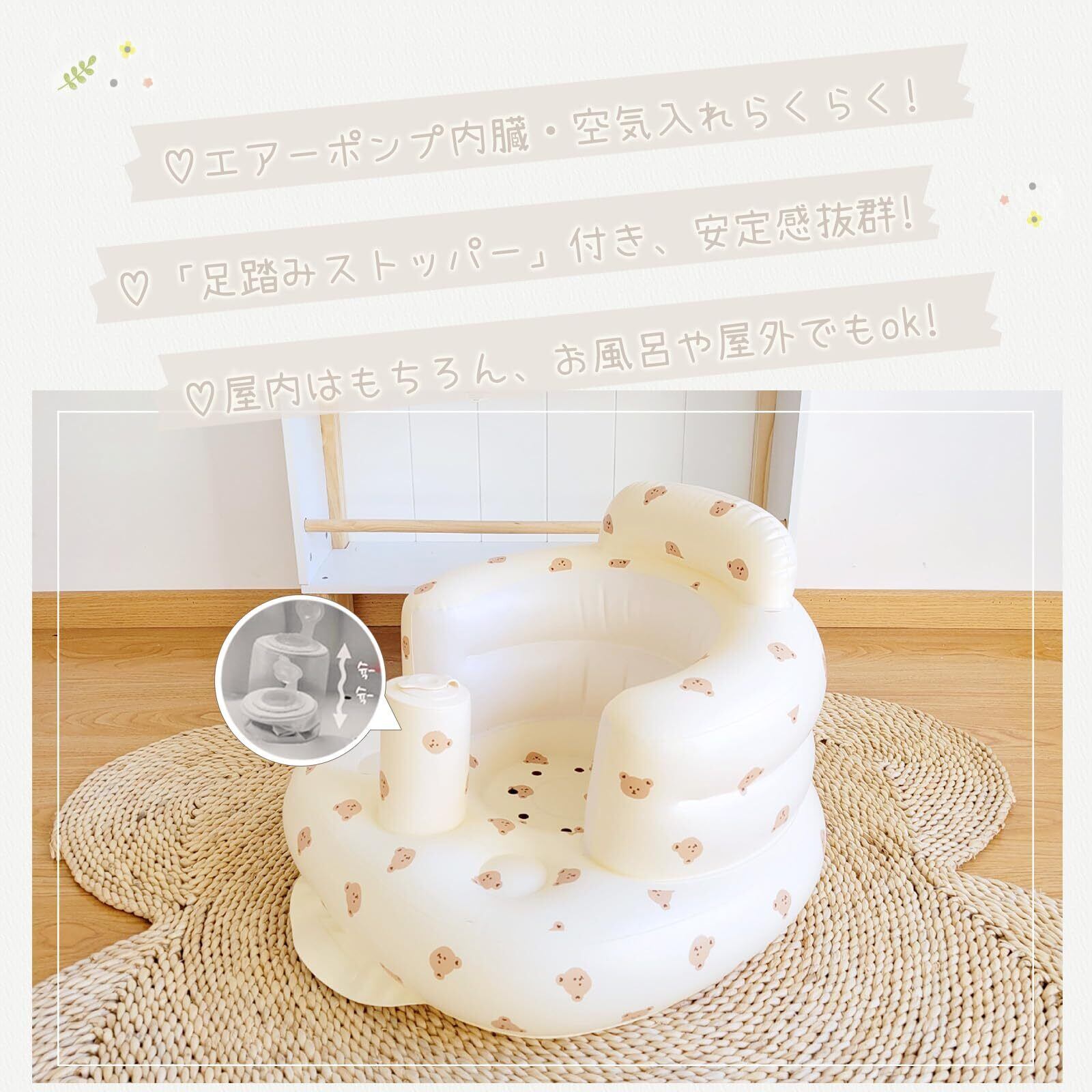 HIKOTO ベビーチェア 赤ちゃん バスチェア ベビー用バスチェア お風呂 食事用 折りたたみ 空気式 お座り練習チェア 持ち運び ふわふわシャワーチェア (クマ)