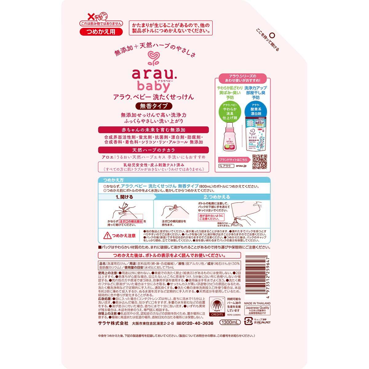 arau.(アラウ)アラウ.ベビー 洗たくせっけん 無香タイプ 詰替用 大容量 1.8回分 1300mL