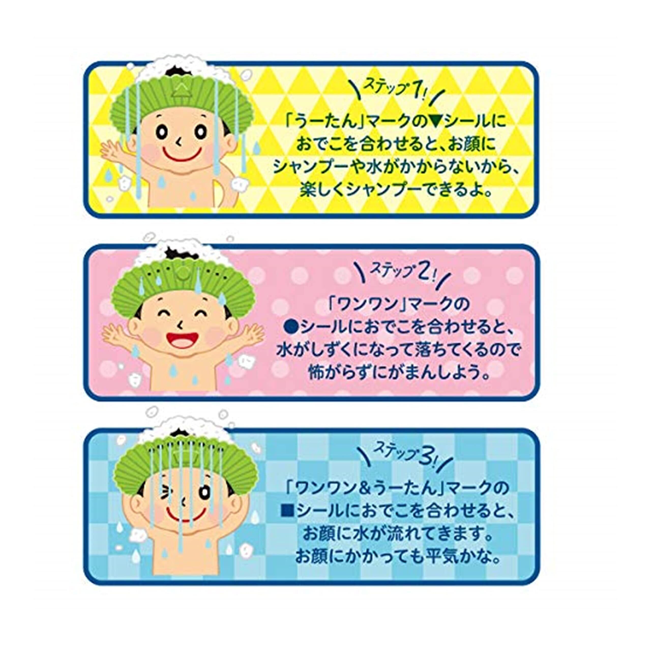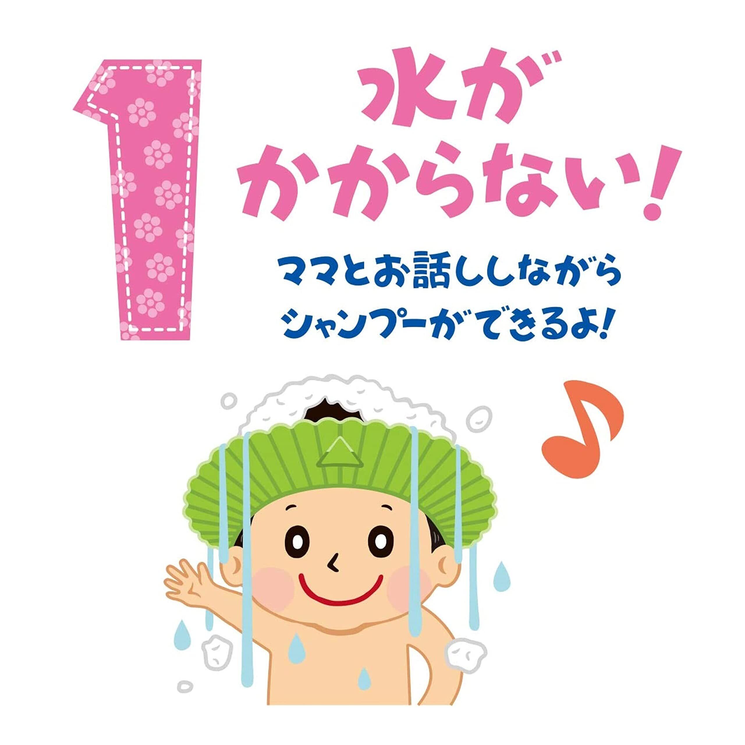 かぶせる前に・・・お子様の目やお顔に、お湯やシャンプーをかけないために、シャンプーハットをかぶせることを伝えてあげましょう。
