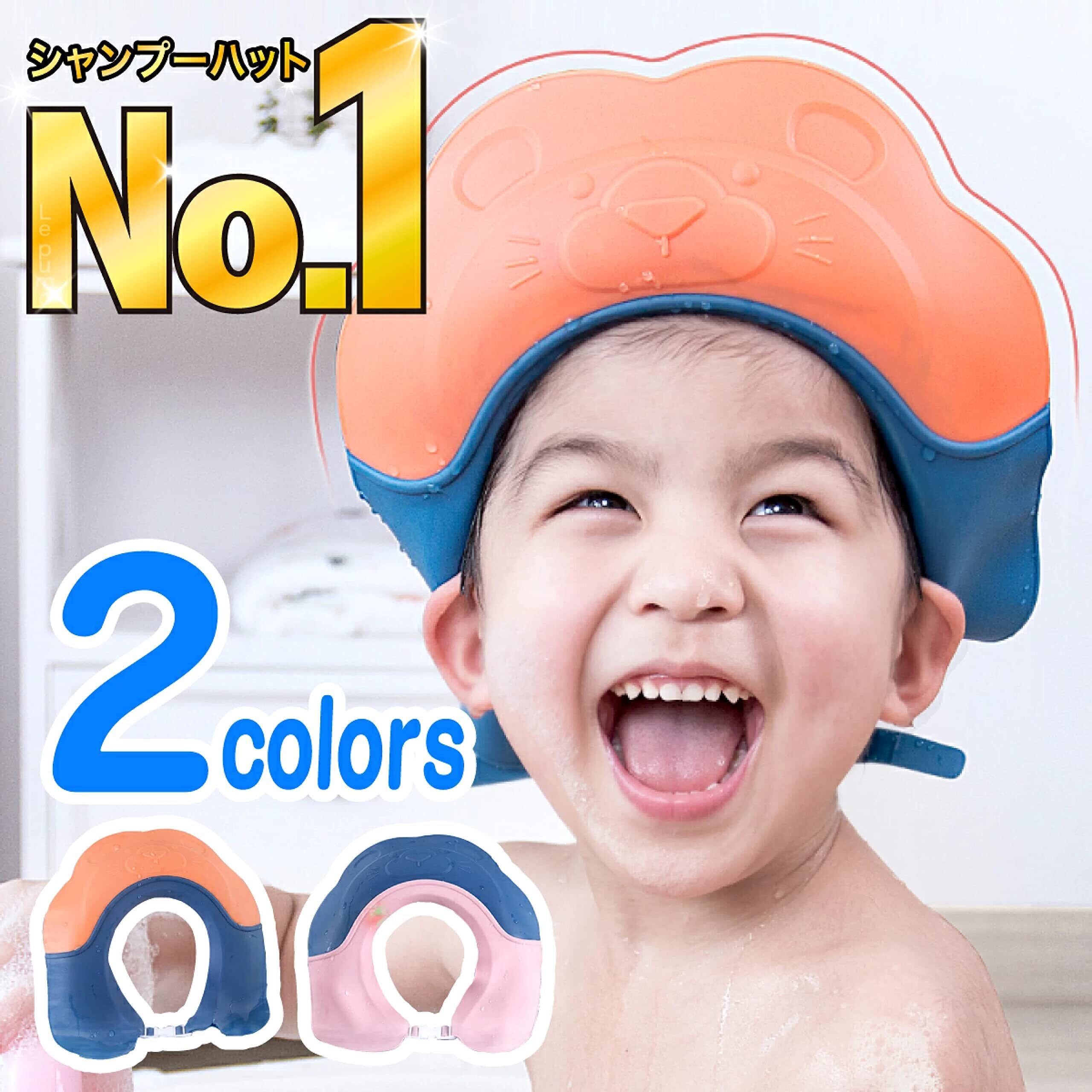 MonikaSun シャンプーハット サイズ調整可能シャンプーキャップ 子供用 シャワーキャップ 防水帽 目を保護 バスグッズ シャワーハット 洗髪用帽子 ライオン (ピンク&ブルー…)