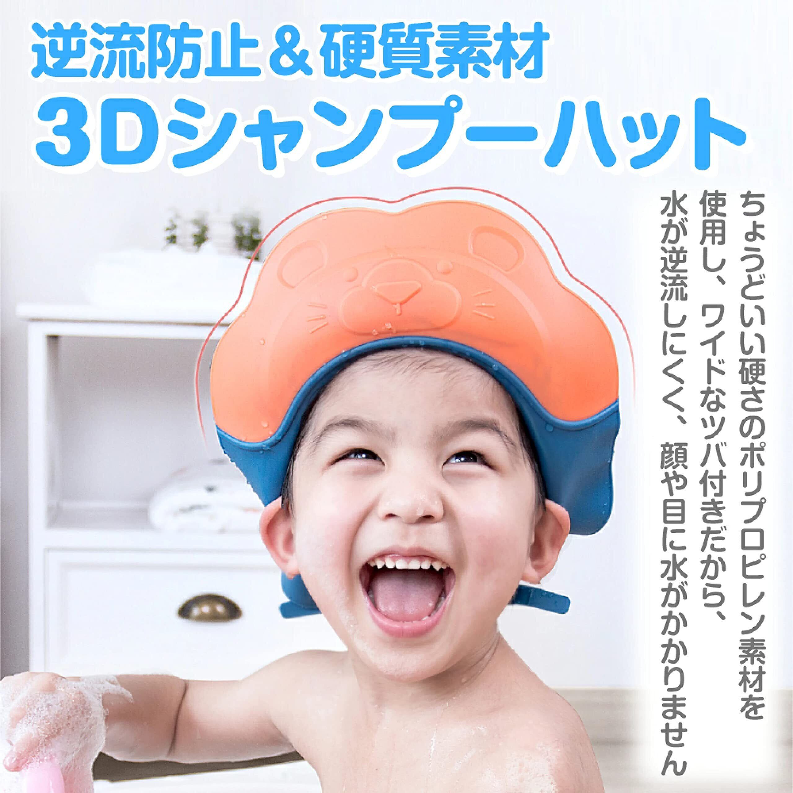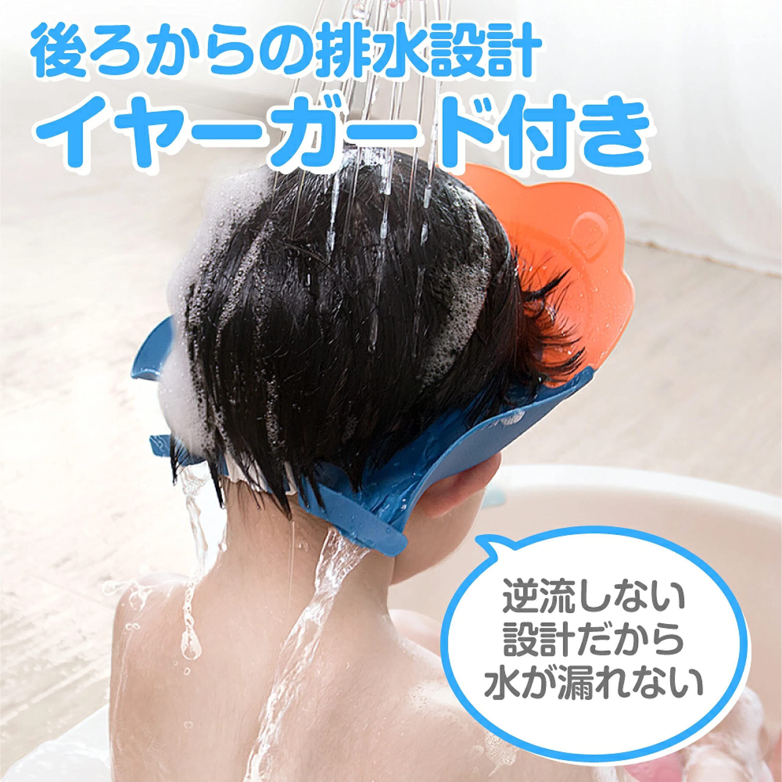 【逆流しない設計】後ろから排水する設計なので、お子様の耳やお目目に水がかからず!お子様もママパパもしっかり安心。つば部分には、強度のあるPP素材を使用しているのが特徴です。頭囲にしっかりフィートする立体設計で頭に触れる部分にはソフトシリコンを採用し、頭の大きさに合わせた細かなサイズ調節もお手軽に。