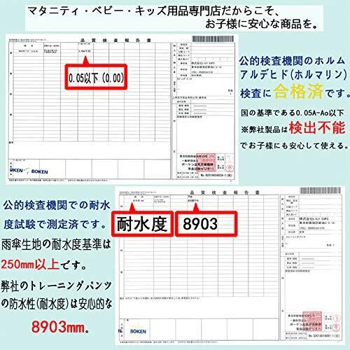・90cm(身長:90cm 体重:~13kg ウエスト:35~53㎝ 太もも周り:28~32㎝) ・100cm(身長:100cm 体重:~16kg ウエスト36~55㎝ 太もも周り29~35㎝) ・110cm(身長:110cm 体重:~17kg ウエスト37~58㎝ 太もも周り30~36㎝)