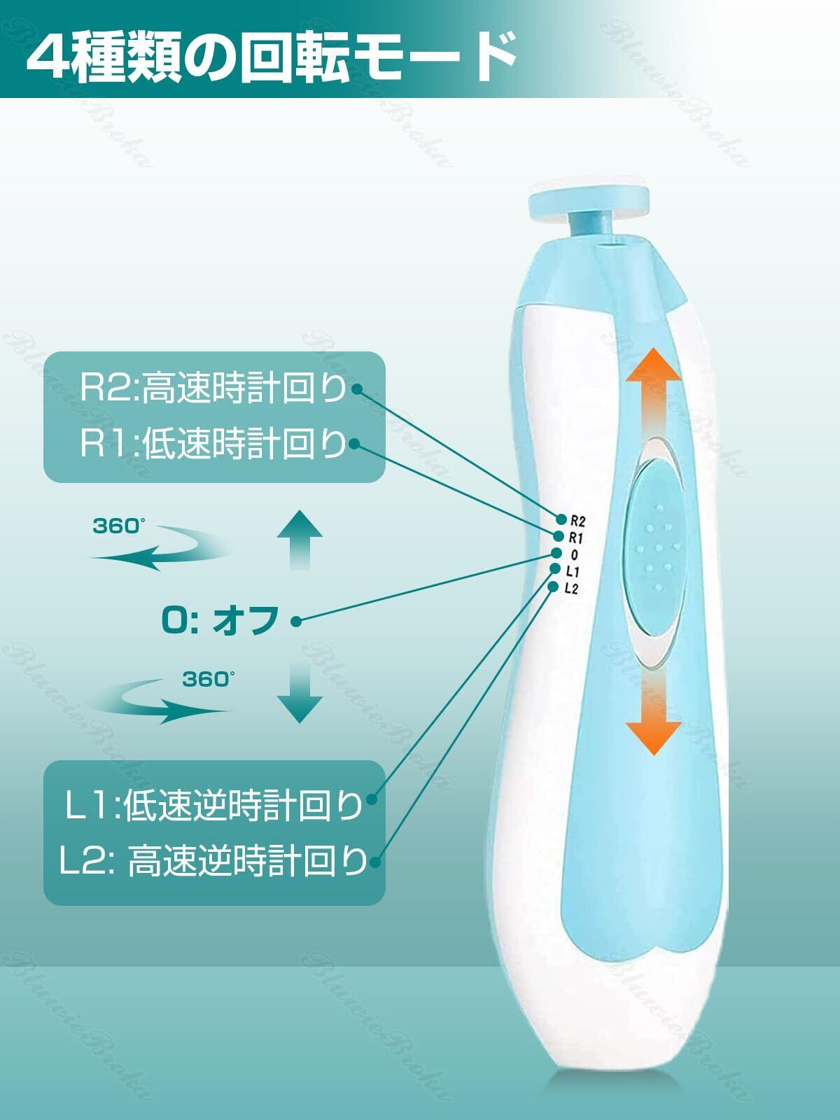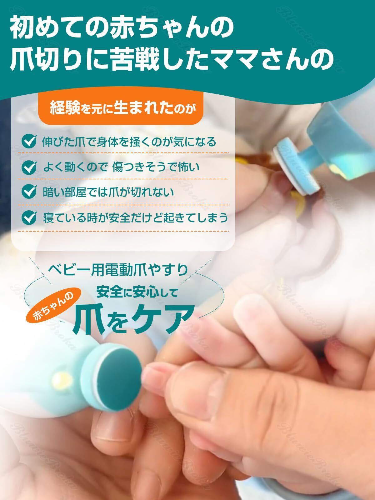 【2025年新型 保育士推薦】赤ちゃん 爪切り 電動 爪けずり 6種類交換ヘッド LEDライト付き ベビー用品 新生児 子供 つめきり 出産準備 あかちゃん つめやすり 便利グッズ 静音 プレゼント ネイルケアセット 日本語取付説明書付き BluwieBroka(赤ちゃん用3種/大人用3種)(男)