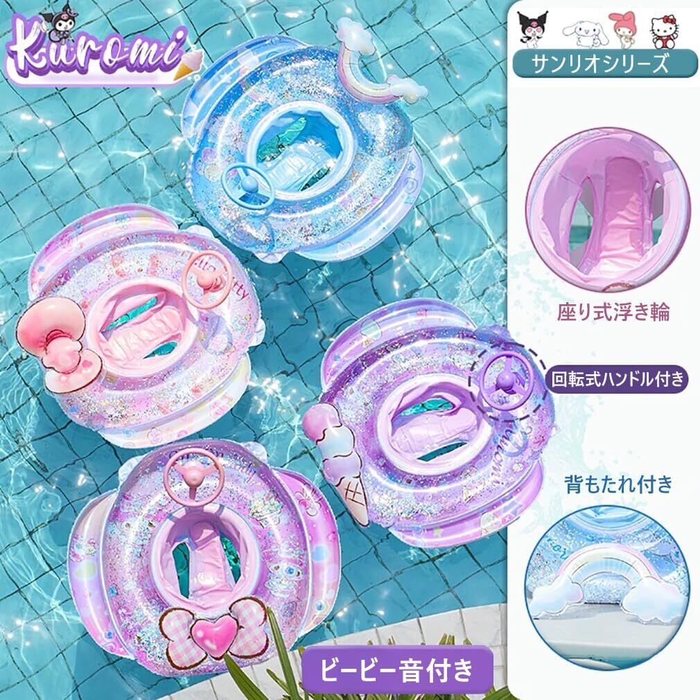 4.ハンドルが付き:かわいいsanrioのデザインが子どもの興味を引き付けるでしょう!更に機能性が高く、子どもの遊び心を満足できるのため、音が鳴るハンドルがつき、ハンドルを回したり、なかのクラクションを押したりすることが可能です。目立つ浮き輪なので、おしゃれな浮き輪を探している方や写真を撮って楽しみましょう!