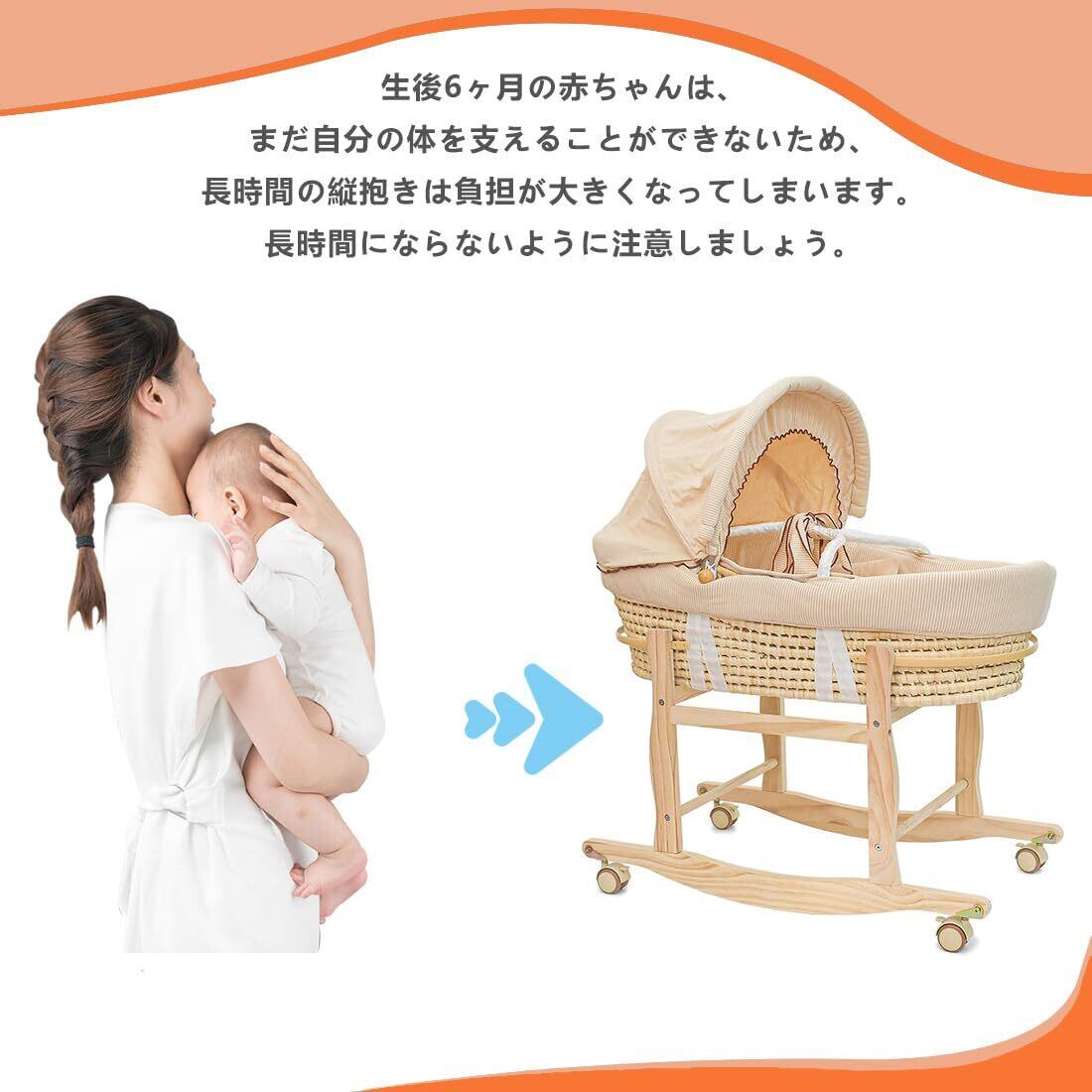 トウモロコシ葉っぱで編まれており、柔らか過ぎずシッカリと安定感があり、蒸れずに通気性が良い。全体的に自然素材を採用され、お布団は綿いりでふかふか、赤ちゃんをやさしくそっと包み込む、快適にお昼寝~