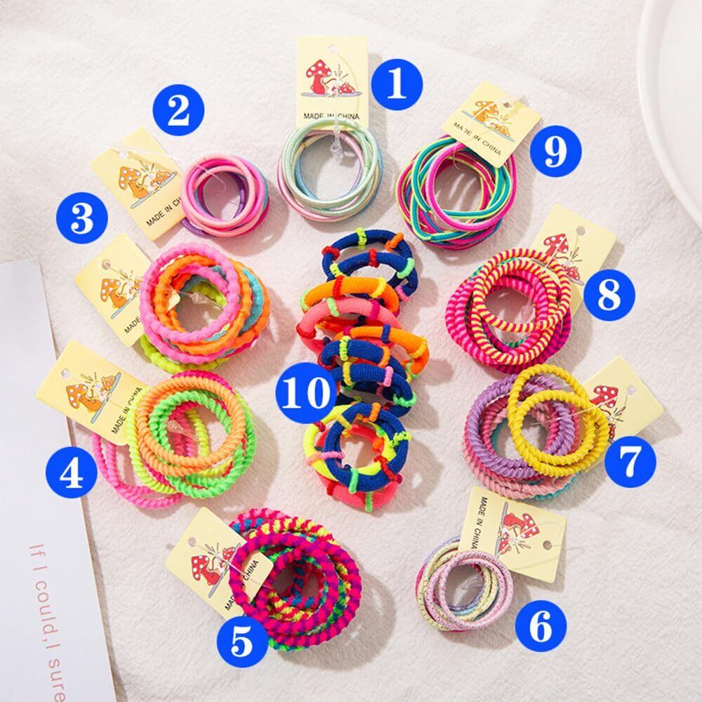 【鮮やかな色】100個は異なる髪の色と簡単に一致させることができ、また、あなたの様々なドレスアップやヘアスタイルを一致させることができます。 ヘアバンドは手頃な価格で、長い間使用することができます。 ポニーテールホルダーとして、毎日、学校に戻る日やトレーニングに適しています。