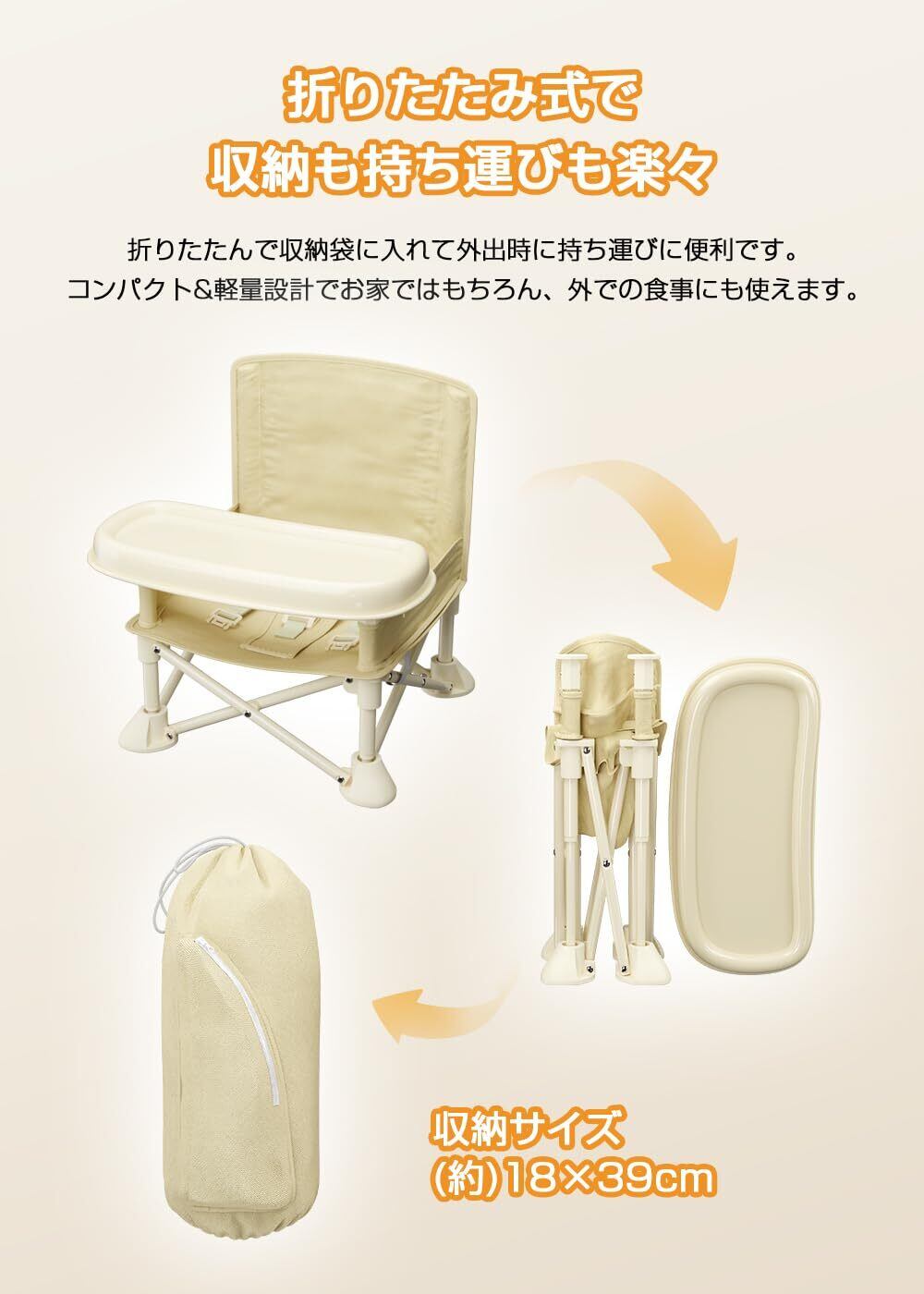 【折りたたみ式&組み立て簡単】折りたたんで収納袋に入れて外出時に持ち運びに便利です。わずか1kgの重量は持ち運びやすい。組み立ては3ステップの簡単な操作で完了、ママお1人でも楽に組み立てられます。コンパクト&軽量設計で持ち運びも収納も楽ちんお家ではもちろん、外での食事にも使えます。母親は、レストランやカフェ、マザーパーティー、公園でのピクニックなどで外食するためにそれらを連れて行くことができます。背もたれの裏に大きなメッシュポケット付き、よだれかけ、ベビー用品、おしりふきなどの便利な収納スペースを提供します!