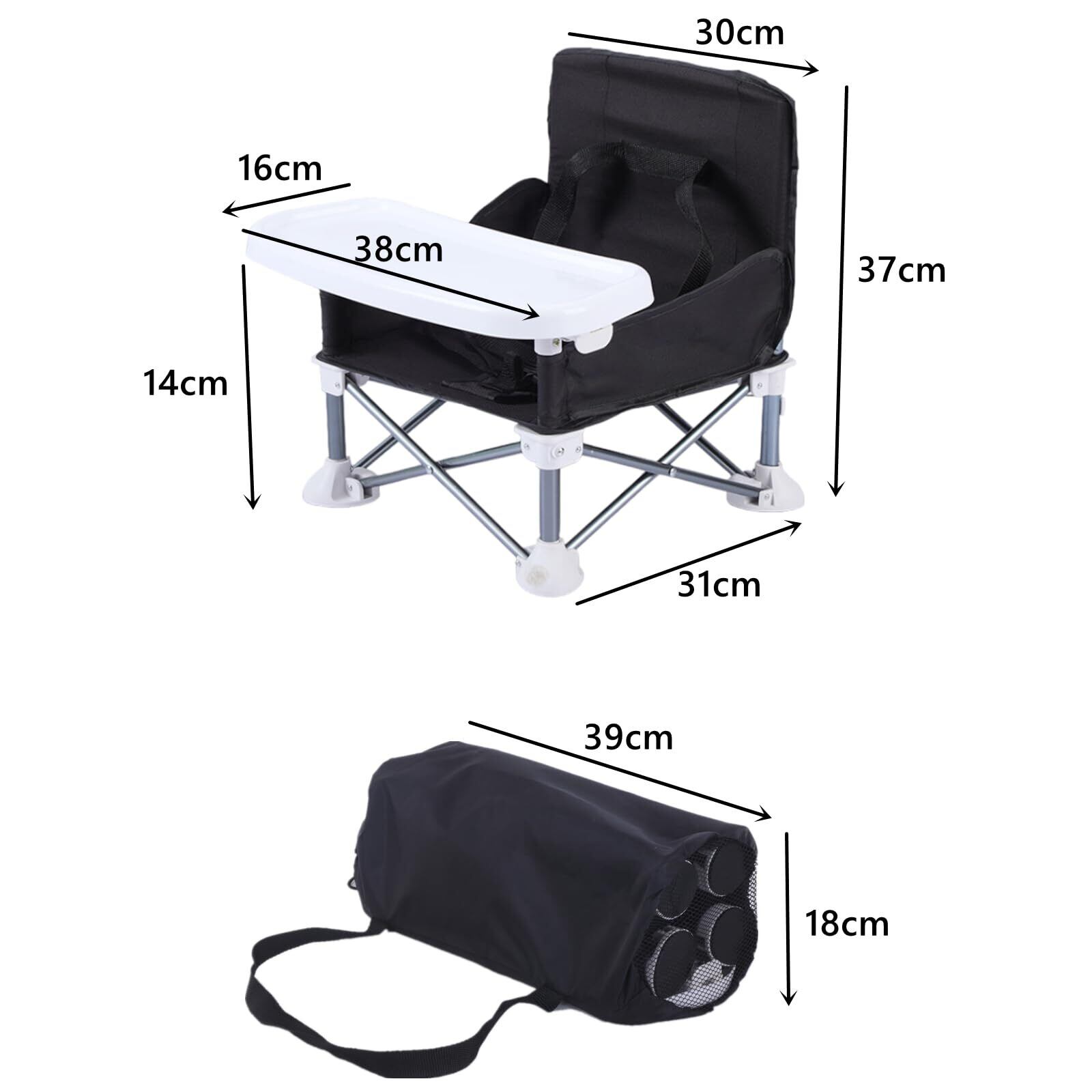 [HB.YE]ベビーチェア テーブルチェア 子供 お食事椅子 折り畳み携帯ベビーシート 赤ちゃんハイチェア ストラップのデザイン アルミダイニングテーブルと椅子 6ヶ月から3歳まで 大容量収納袋 多機能チェア (黒, 31 * 31 * 37cm)