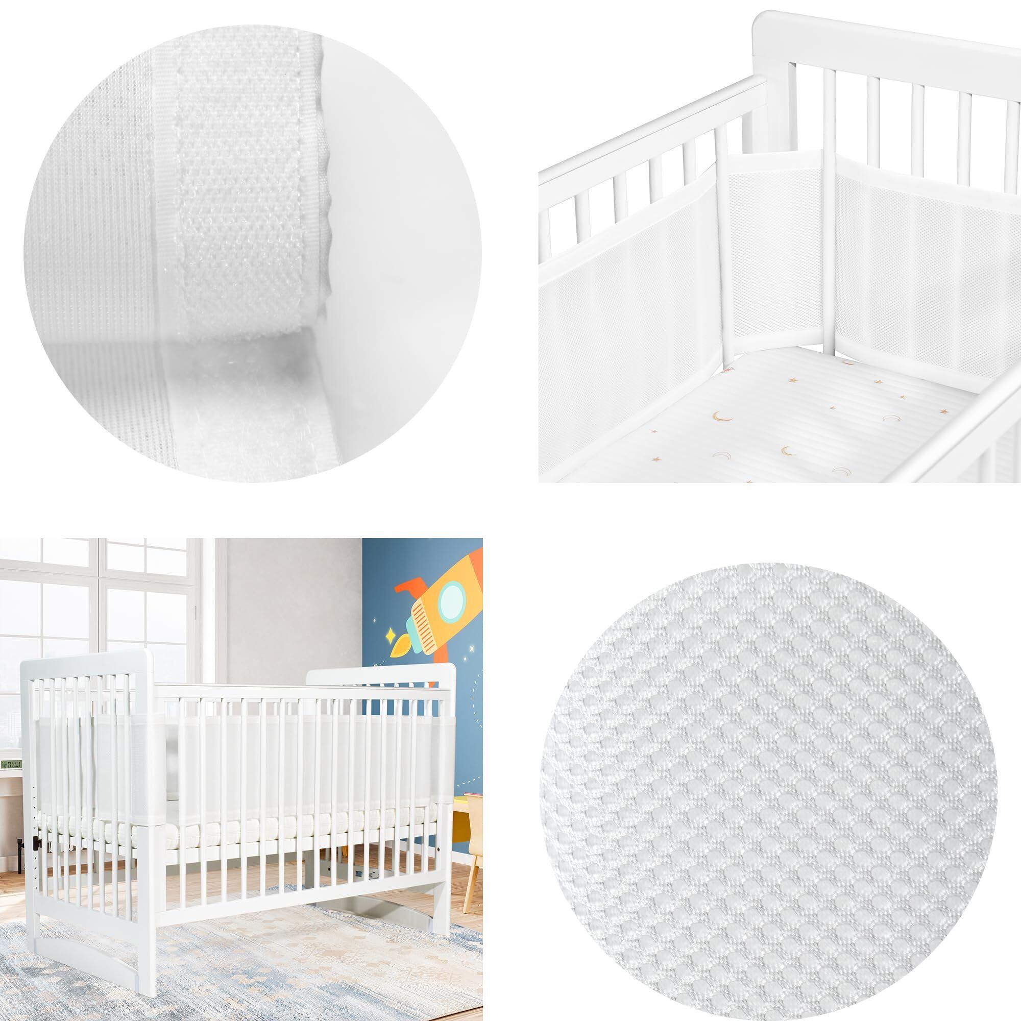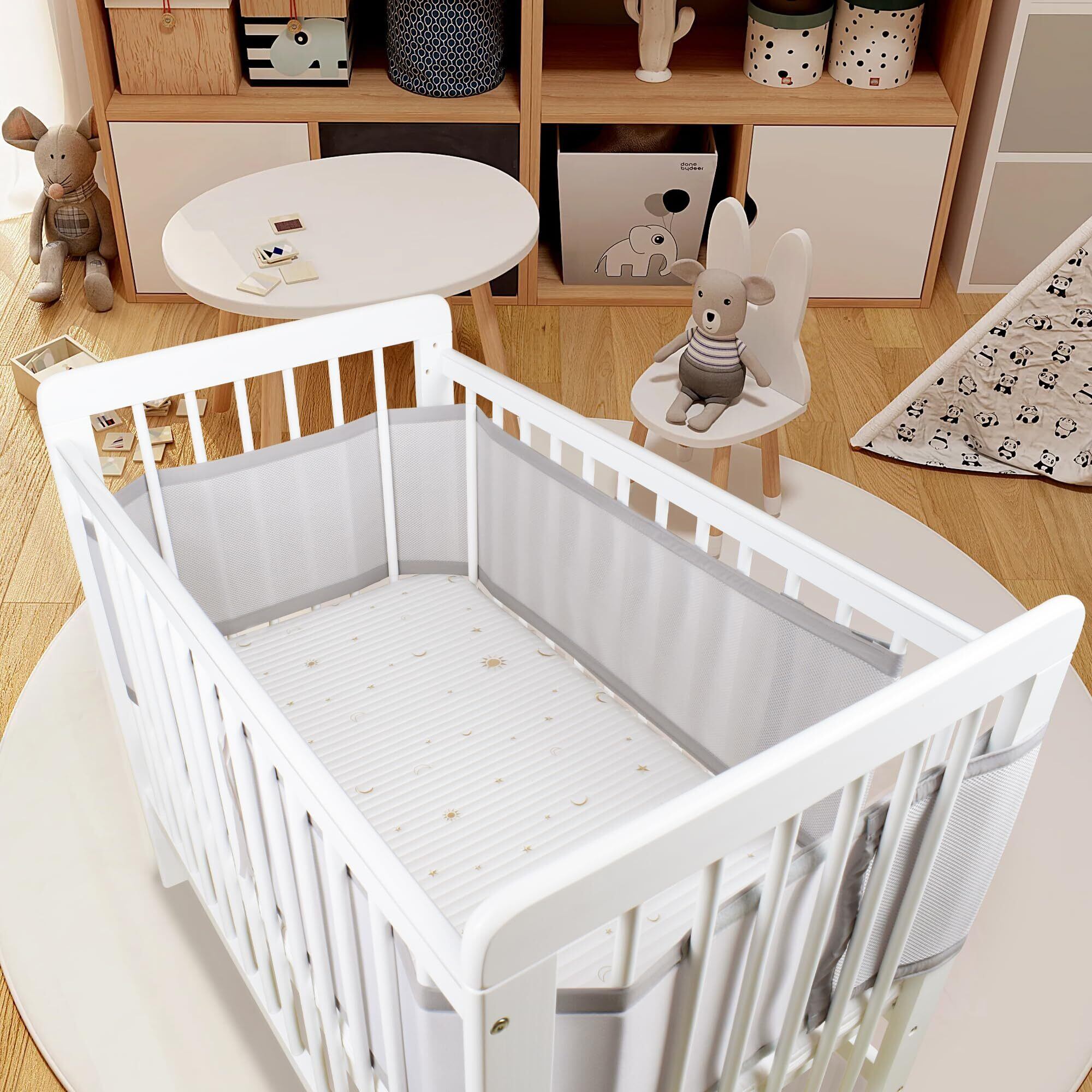 Sageky ベビーベッド用通気性メッシュバンパーパッド|3mmエアフローテクノロジー|標準的なベビーベッドに適合|安全で快適な赤ちゃんの眠り (Grigio)