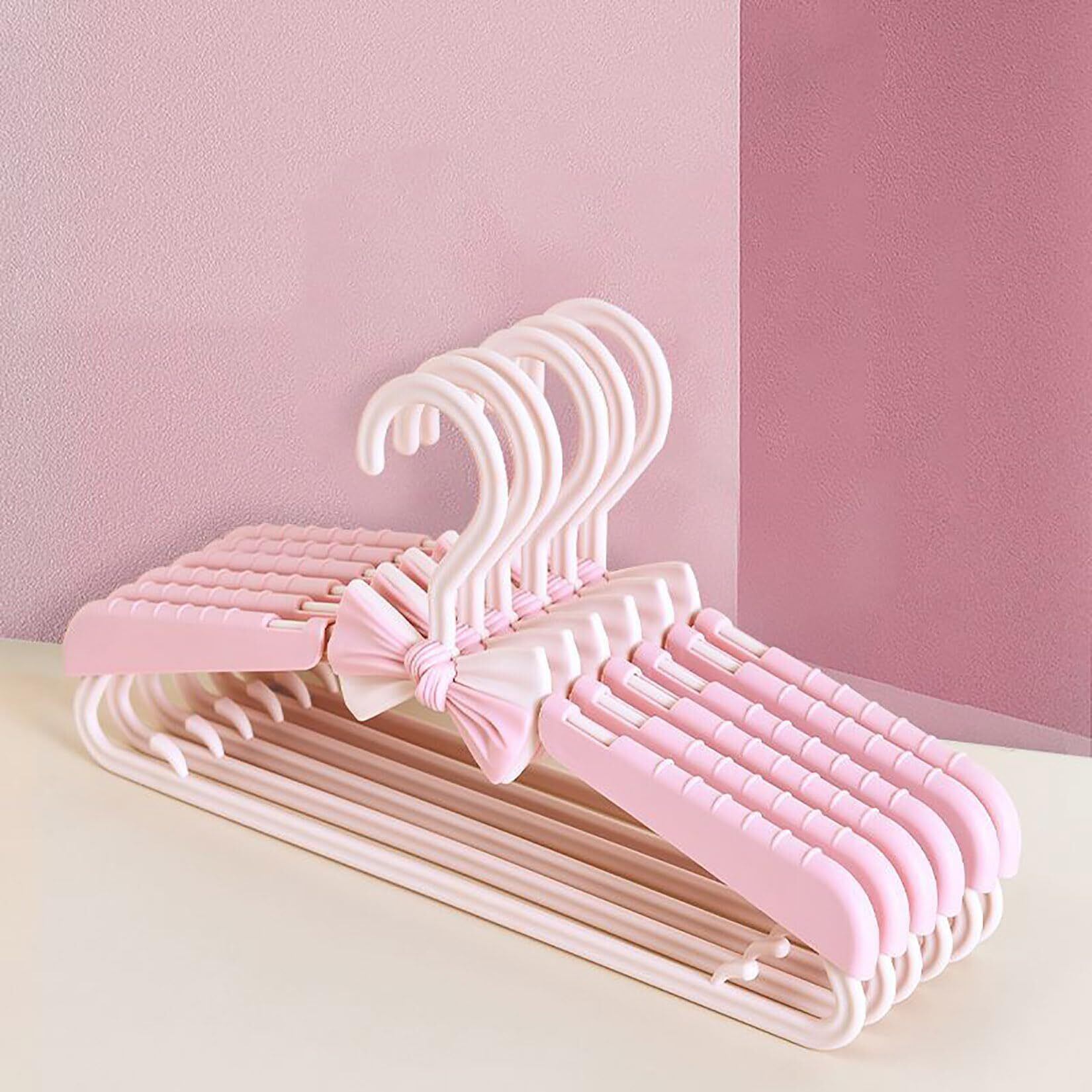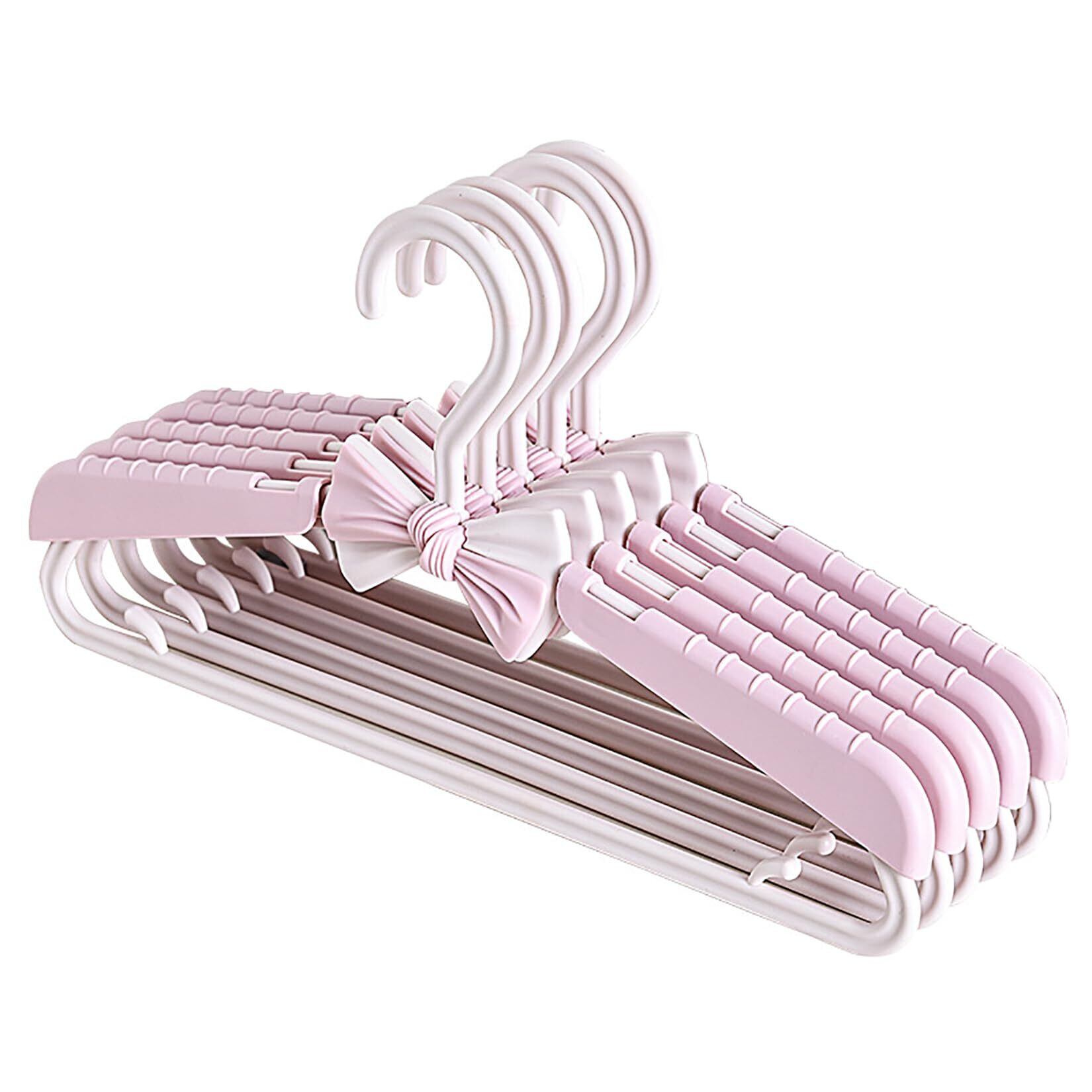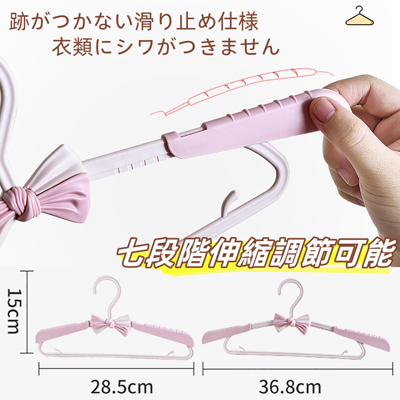 Orirya ハンガー ズボンハンガー 洗濯ハンガー かたくずれ防止 かわいい蝶結び付き 伸縮式 ベビーハンガー 滑らない 調節可能28.5~36.8cm 5本セット ピンク