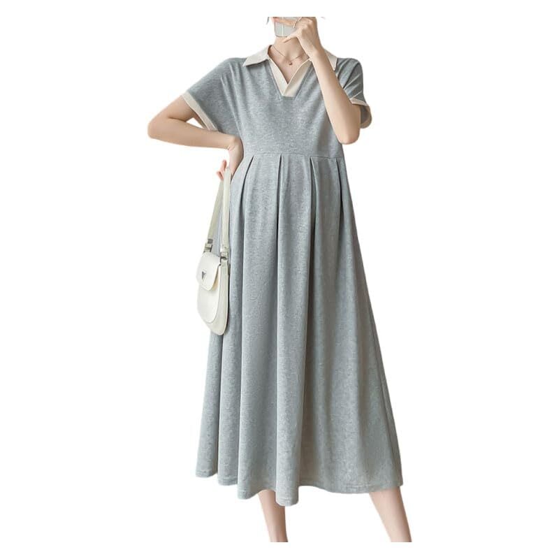 [Shubeiyi] マタニティワンピース 妊婦用 半袖 カジュアル ロング丈 春夏 コットン 産前産後 普段着からオフィスまで おしゃれ シンプル 可愛い