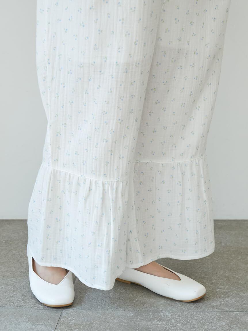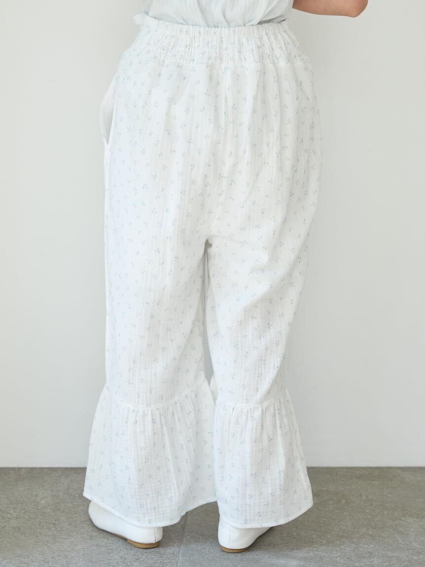 【裾フリルが大人可愛いマタニティガーゼロングパンツ】