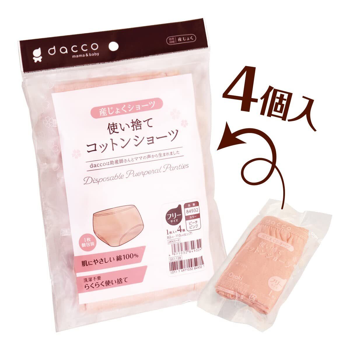 dacco(ダッコ) 産じょくショーツ 使い捨てコットンショーツ フリーサイズ ピーチピンク1枚入×4個(4枚入) 個包装 出張 旅行 綿100% 84932