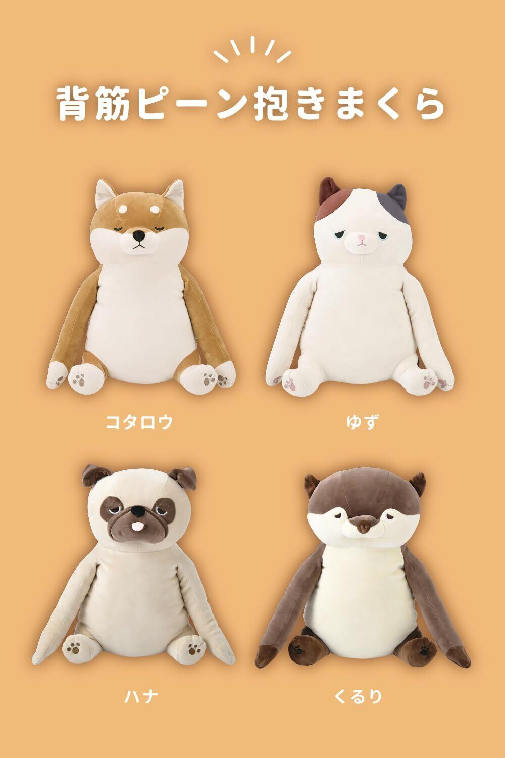 人気の、ミケネコのゆずと柴犬のコタロウが背筋をピーンと伸ばしてくれる抱きまくらになりました!